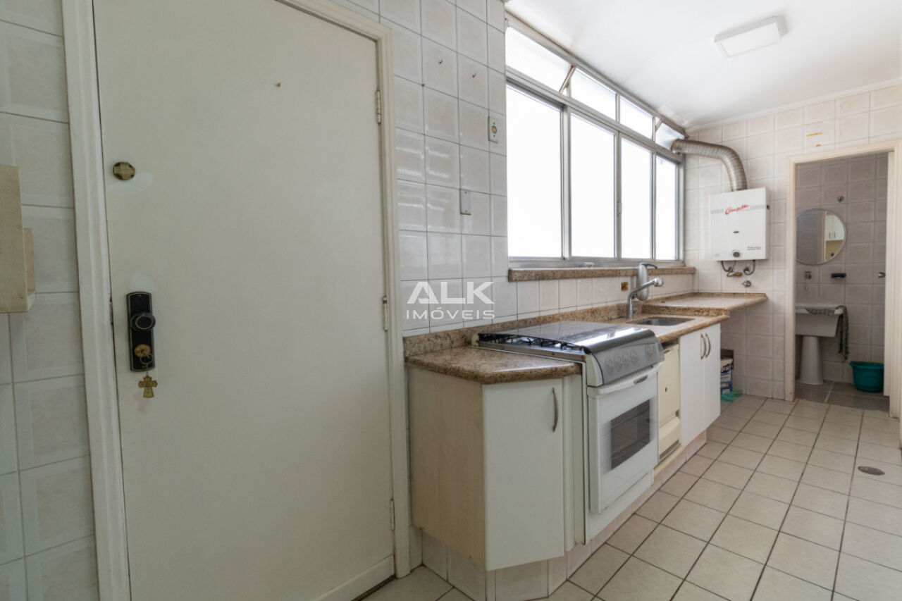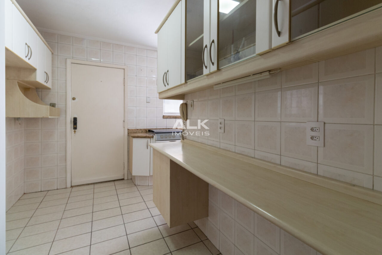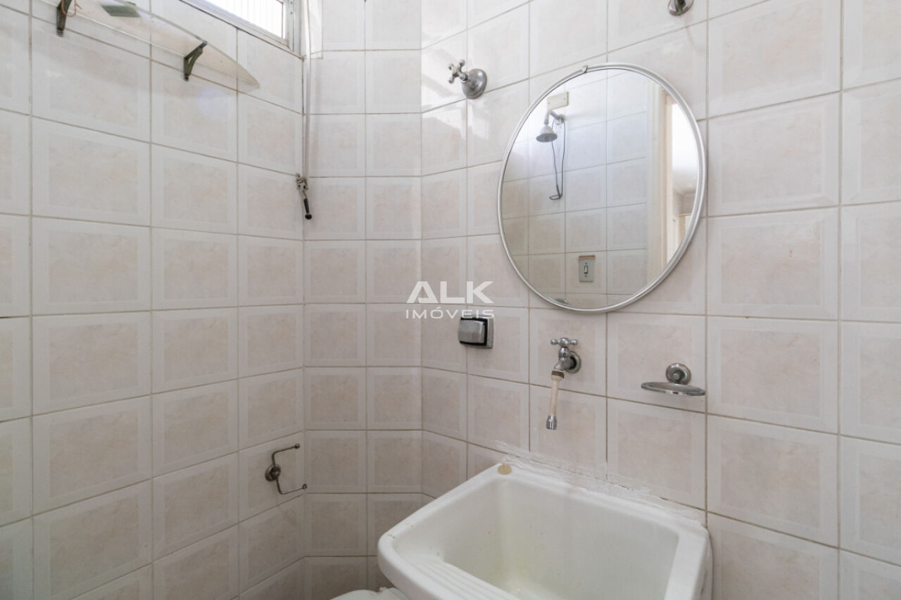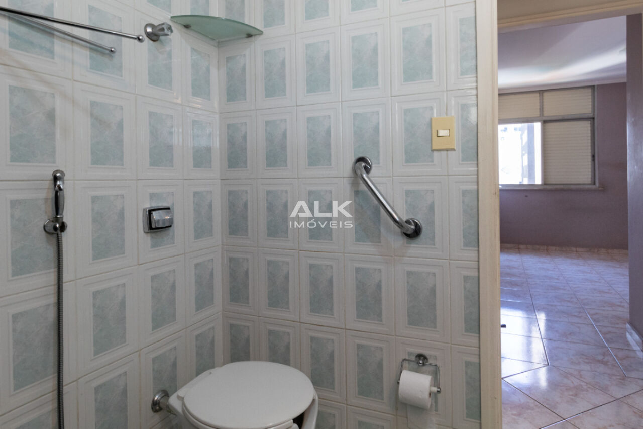 O apartamento apresenta uma planta inteligente e muito bem distribuída, característica marcante das construções da década de 70. A área íntima conta com dois dormitórios amplos, ambos equipados com armários embutidos de excelente qualidade, garantindo organização e otimização de espaço. O banheiro social é espaçoso e funcional. A área social é composta por uma sala iluminada e arejada, perfeita para criar dois ambientes distintos de convivência. A cozinha é um destaque à parte, contando com armários planejados que oferecem praticidade para o dia a dia, conectando-se a uma área de serviço completa, que inclui banheiro auxiliar, um diferencial muito procurado para quem busca funcionalidade extra.