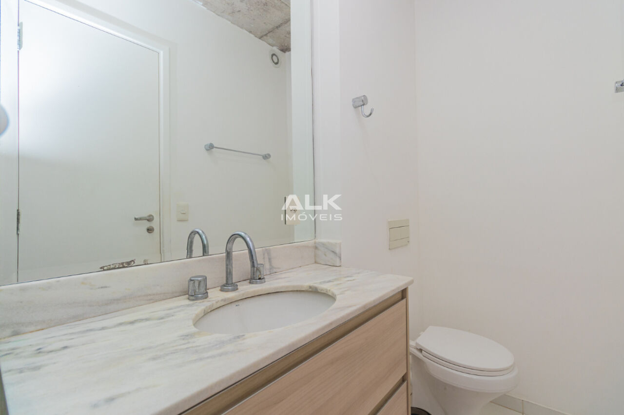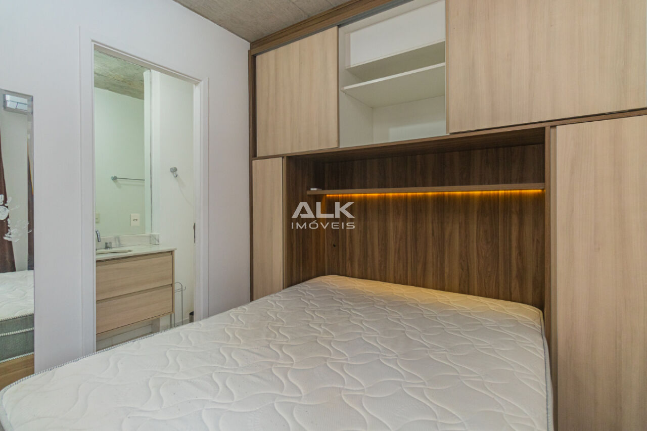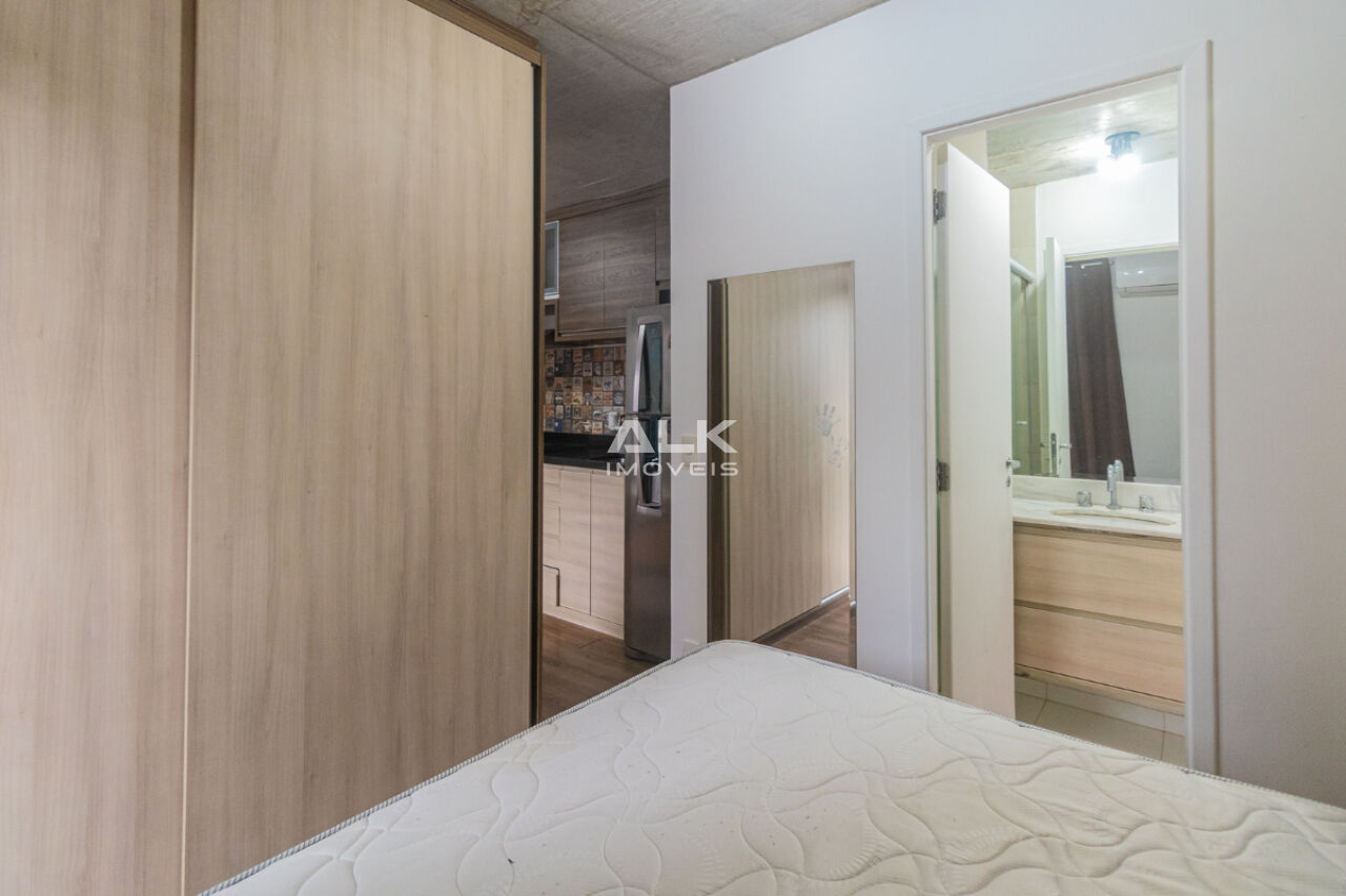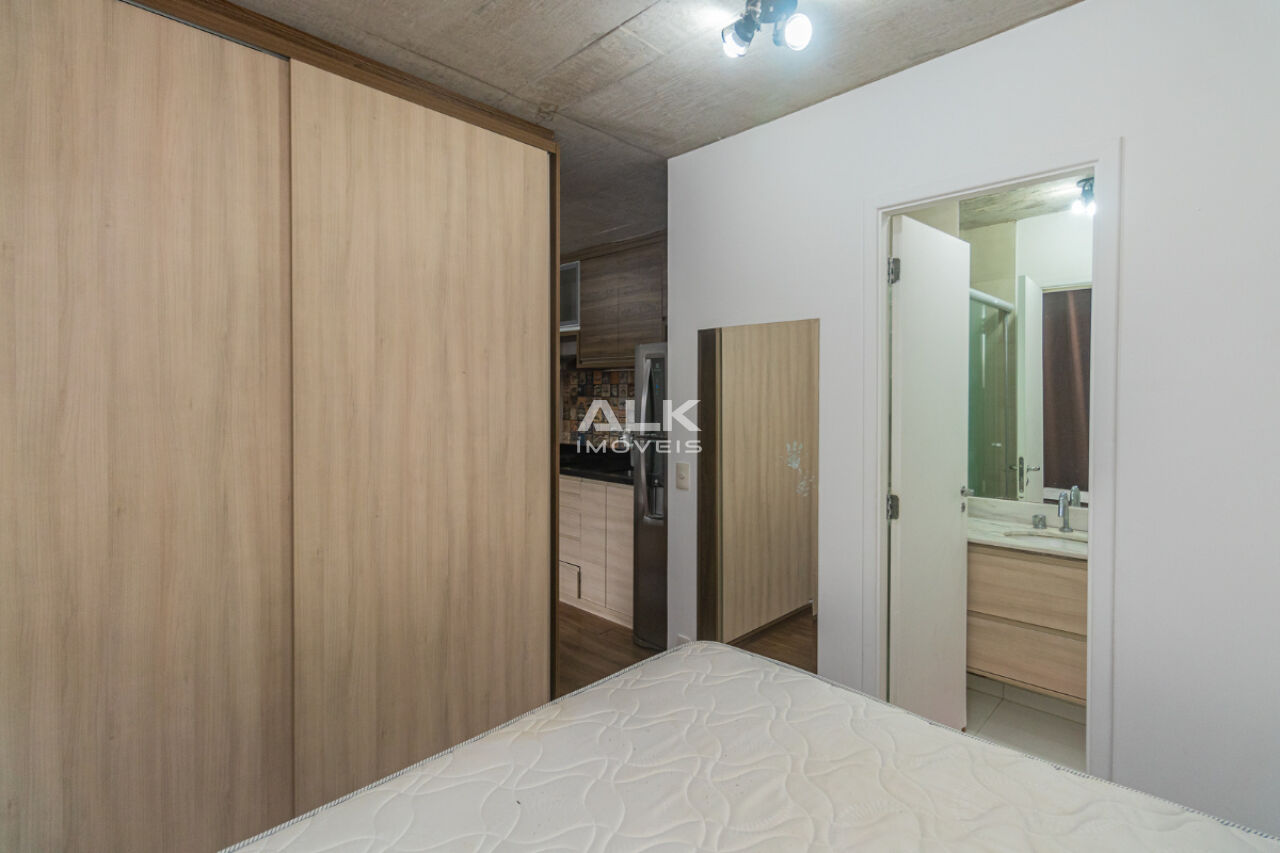 Studio de 32 metros quadrados com 1 quarto com ar-condicionado, 1 banheiro, varanda, sala integrada a cozinha, 1 vaga de garagem com serviço de manobrista. É ideal para quem procura conforto e comodidade. O condomínio tem academia e espaço gourmet.