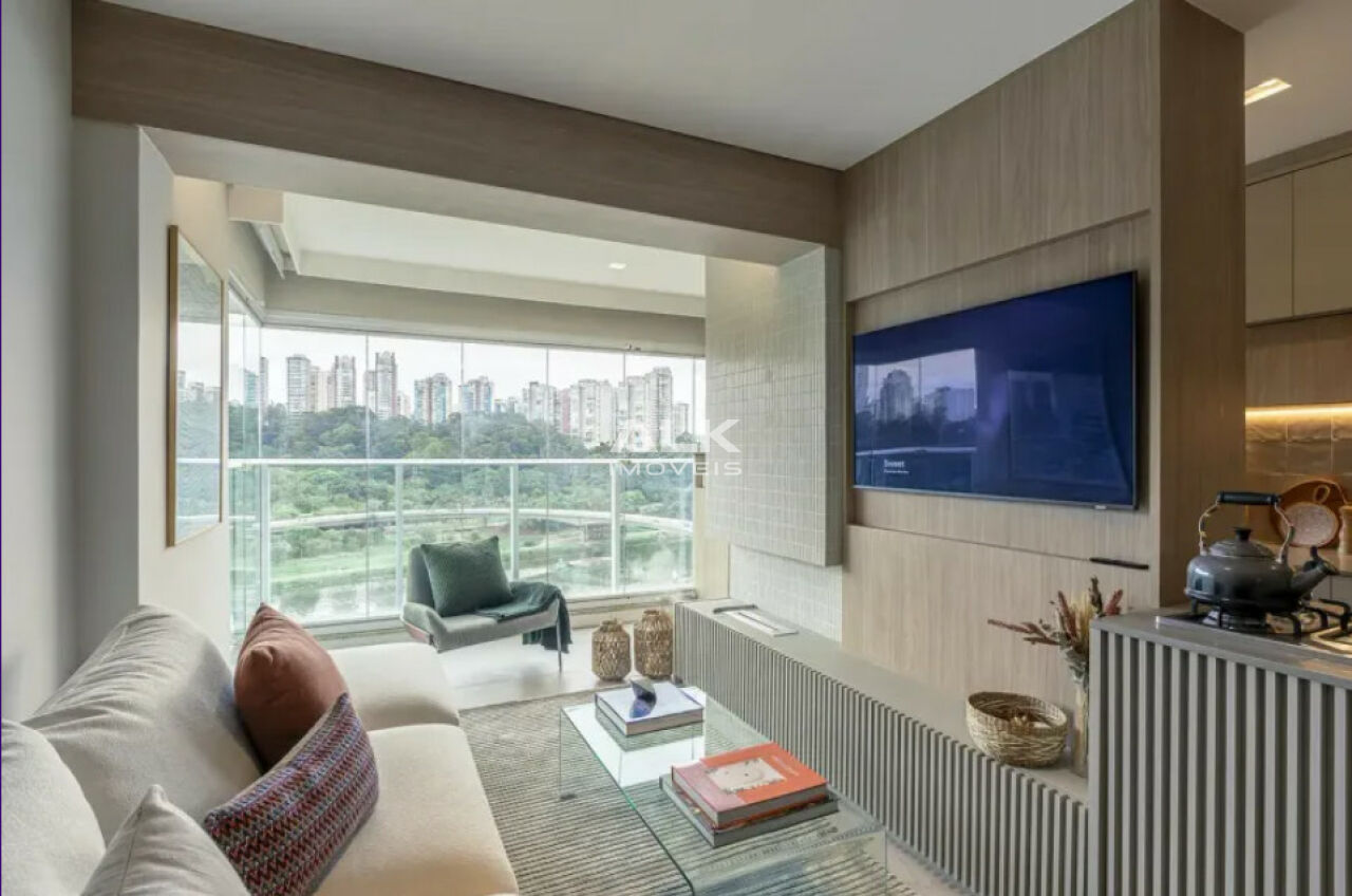 Lindo apartamento pronto para morar na Chácara Santo Antônio. Ótima localização, próximo ao shopping Morumbi, hipermercados, parque Burle Marx e Severo Gomes, estações de metrô e escritórios. Para quem busca mobilidade e uma vida prática. Projeto conceitual, feito por arquiteto, rico em marcenaria detalhes de alto padrão. Lareira ecológica, fechadura elétrica, persianas e toalheiros elétricos. Suíte + 1 vaga coberta. Ar Condicionado em todos os ambientes. Impecável.