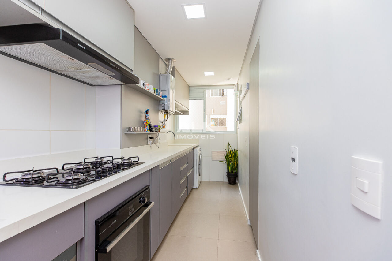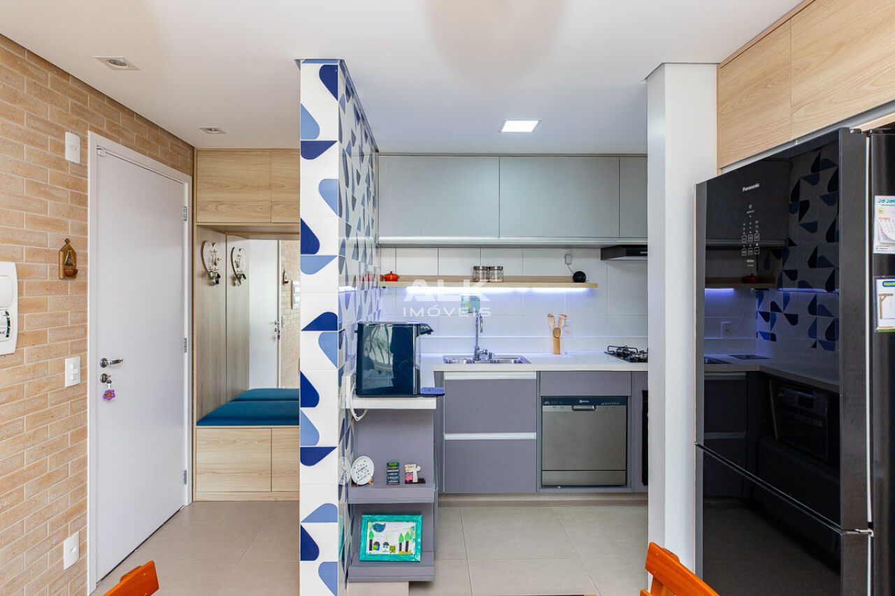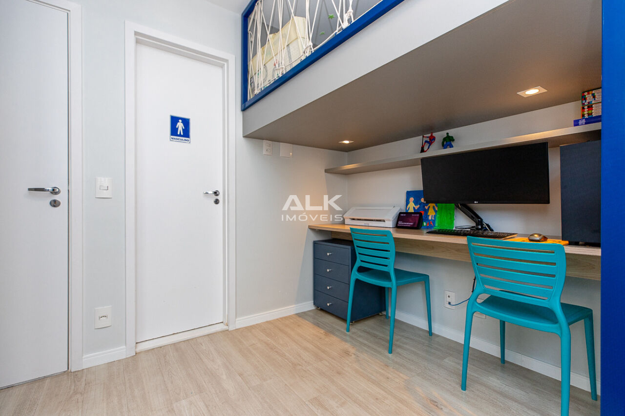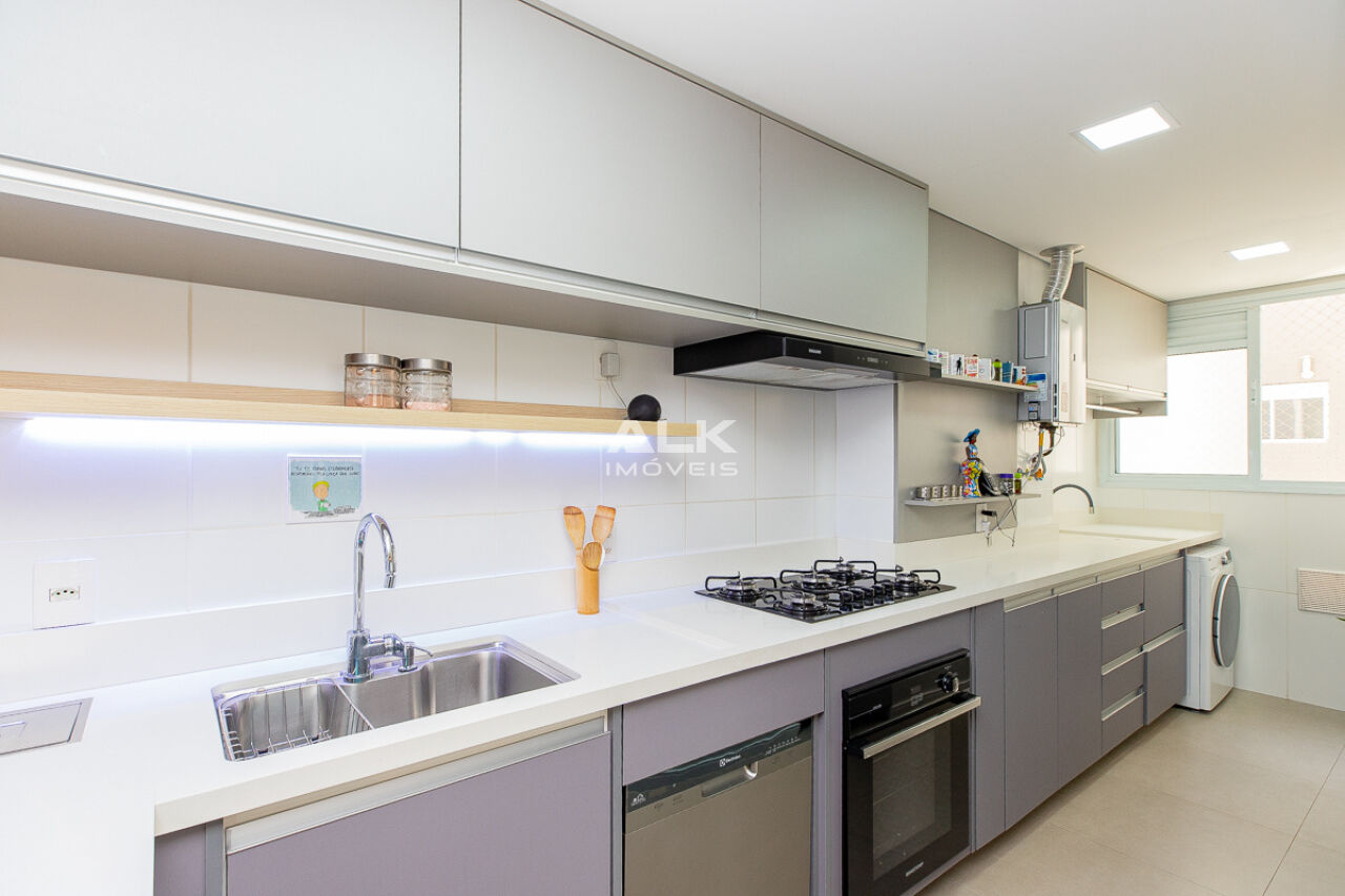 A cozinha americana, moderna e funcional, conecta-se de maneira inteligente à área de serviço, otimizando o dia a dia sem abrir mão do design. Na área íntima, três dormitórios bem distribuídos, sendo duas suítes que proporcionam privacidade e conforto em medida ideal. Todos os ambientes estão equipados com armários planejados de alta qualidade, e a infraestrutura para ar-condicionado já se encontra pronta, garantindo um toque extra de praticidade. Um lavabo elegante completa o projeto, pensado para atender com distinção moradores e convidados.