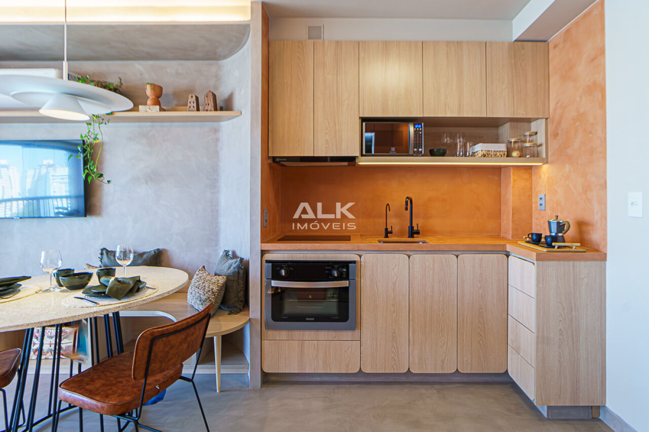 O apartamento impressiona com seus acabamentos de alta qualidade, proporcionando um ambiente elegante e acolhedor. Sua cozinha equipada é perfeita para os amantes da culinária, enquanto o banheiro exibe um design sofisticado. A espaçosa área de estar, integrada ao ambiente, é ideal para relaxar e receber amigos e familiares.