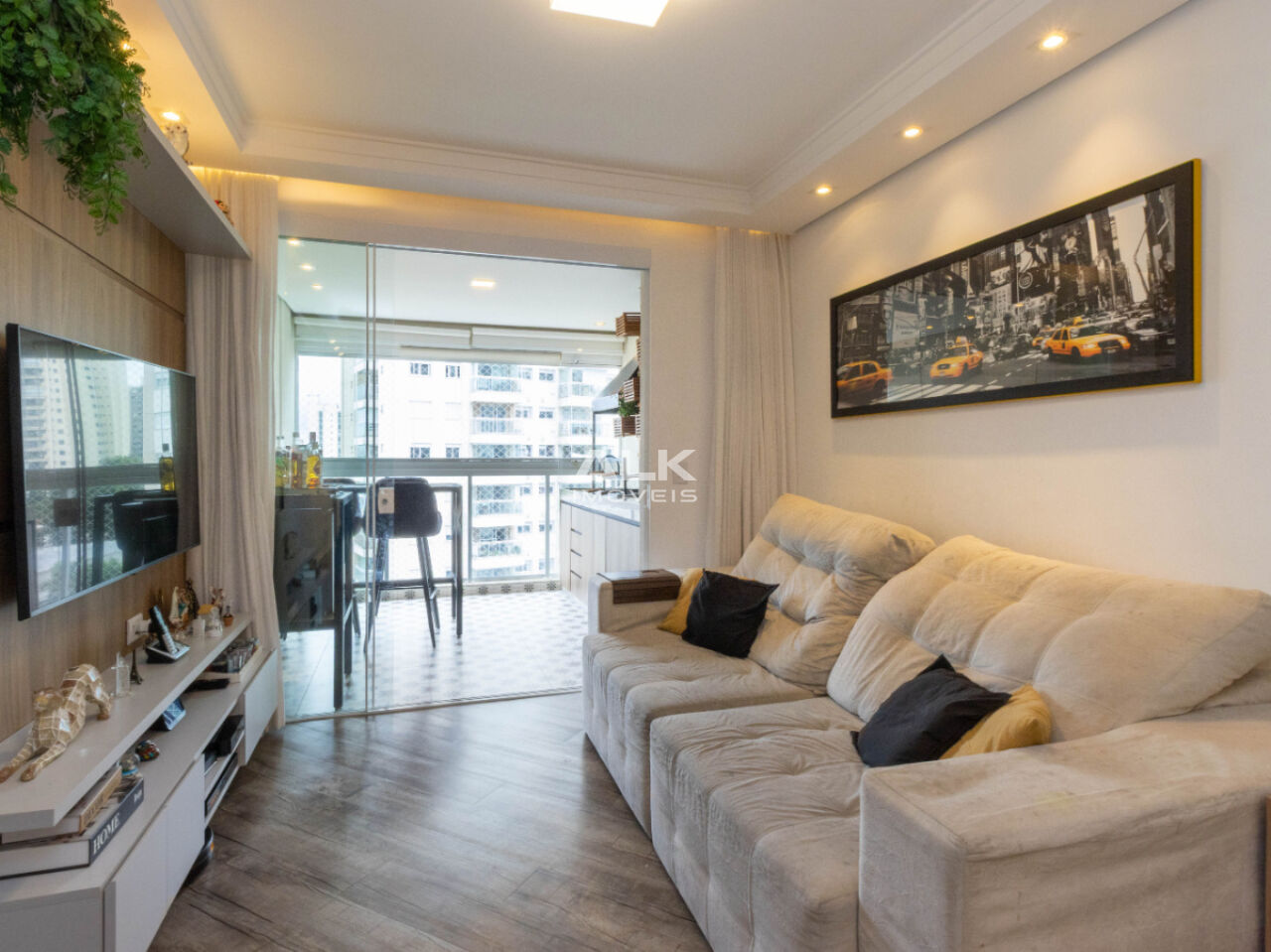 Com 68m² muito bem distribuídos, o imóvel conta com 2 dormitórios, sendo 1 suíte, além de banheiro social. O living é integrado à varanda gourmet, criando um ambiente amplo, moderno e perfeito tanto para o dia a dia quanto para receber amigos e familiares. A varanda ainda proporciona uma bela vista, trazendo mais luminosidade e sensação de bem-estar ao ambiente.