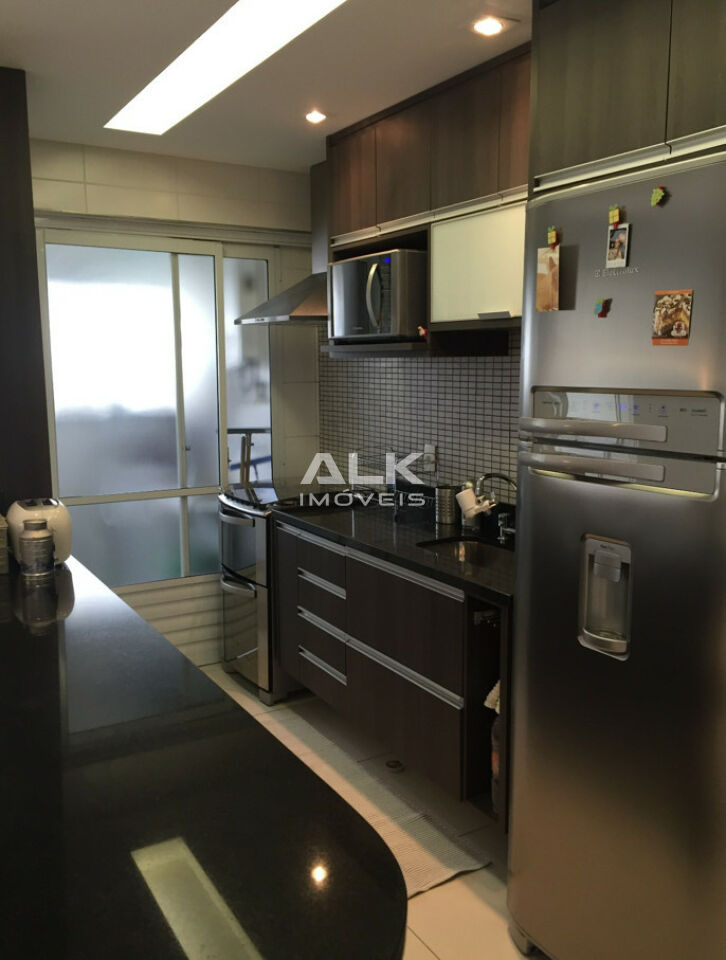 Apartamento em prédio com 13 anos, super moderno, andar alto e vista livre (face norte) ensolarado, 1 suíte com ar condicionado repleta de armários e mais um quarto com banheiro social, a cozinha é integrada com a sala, tem área de serviço e uma varanda aconchegante. Prédio com muito lazer, piscina, sauna, espaço kids, academia e salão de festas. 2 vagas de garagem. Andares : 12 Posição do Apto : Fundos.
