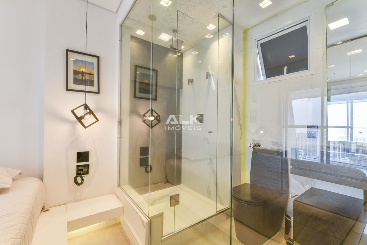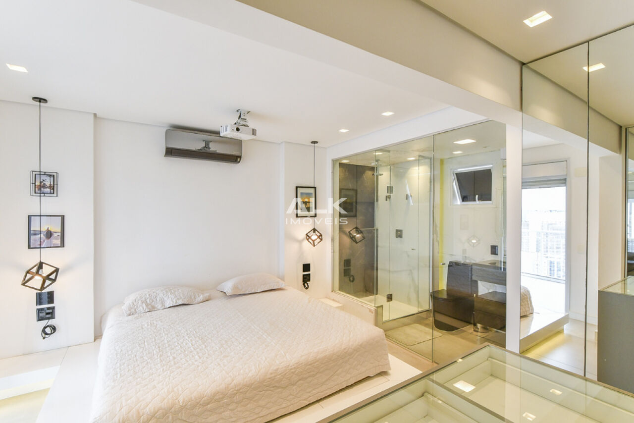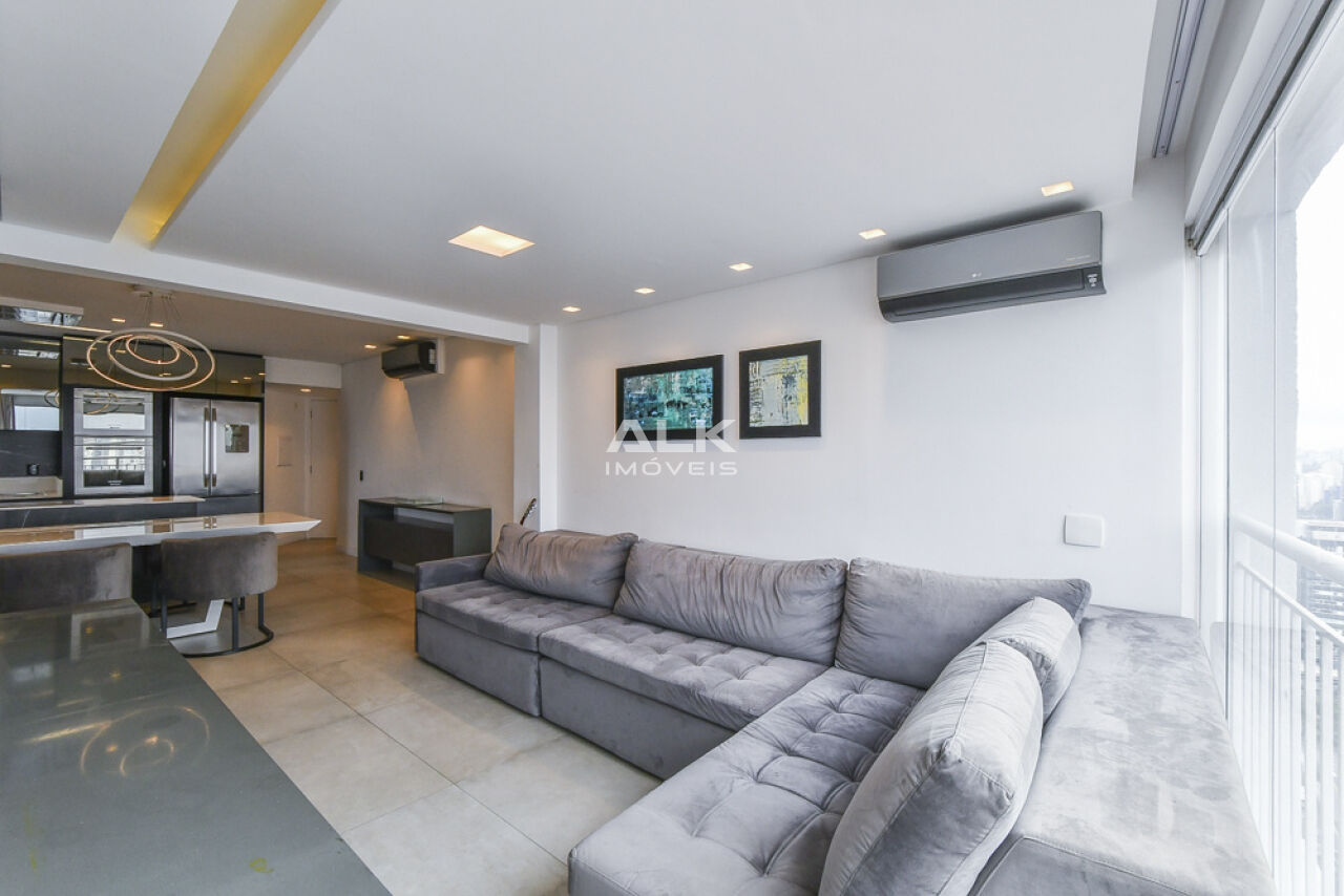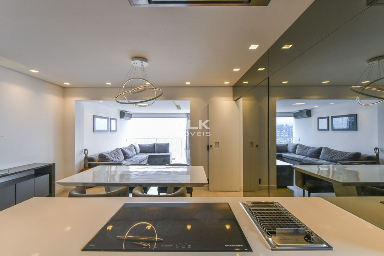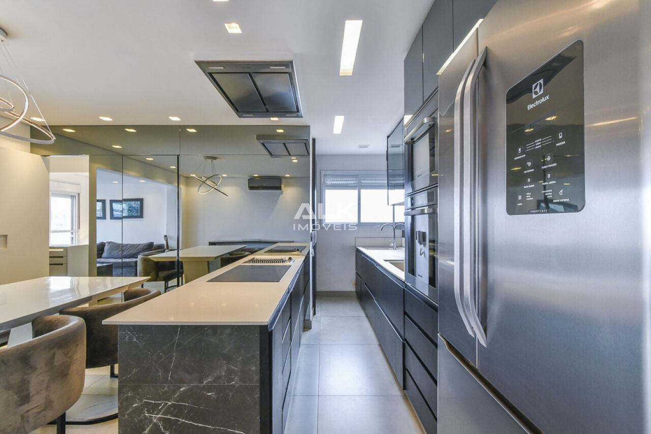 Com 80 m2. 1 suíte bem espaçosa, com closet funcional, lavabo, living integrado a cozinha com eletrodomésticos de primeira linha (forno e microondas Brastemp Gourmand e Exaustor Eletromec), churrasqueira elétrica, e fogão por indução. esse apartamento preza pela sofisticação no planejamento dos interiores e integração dos ambientes.