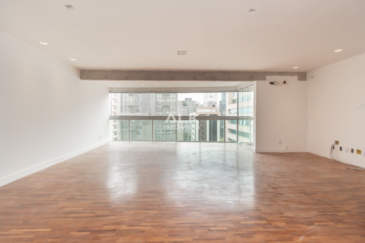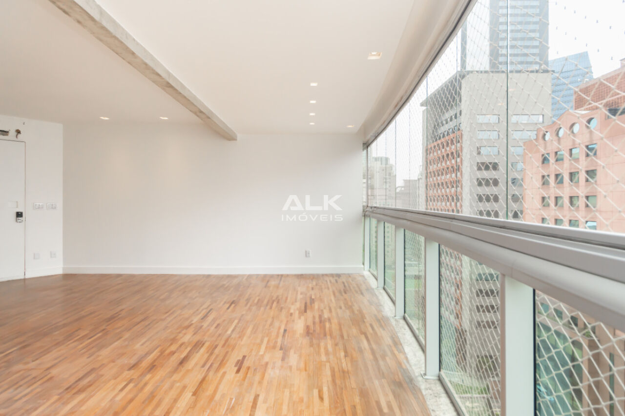 Neste apartamento com 124,5m² de área útil muito bem iluminado durante todo o dia. A varanda foi integrada com a sala e a cozinha.
