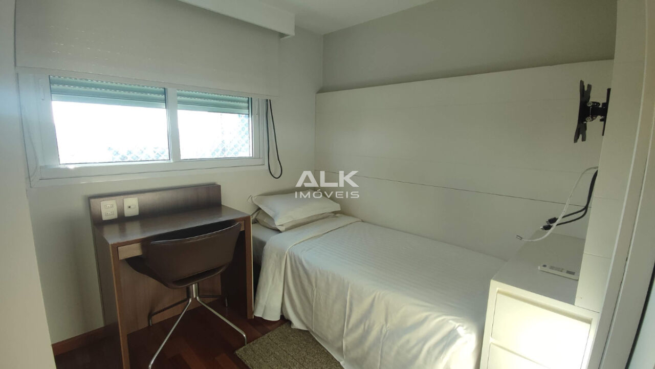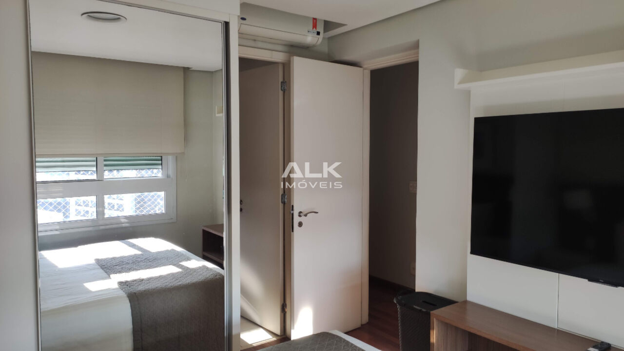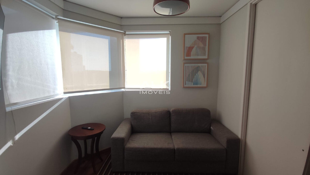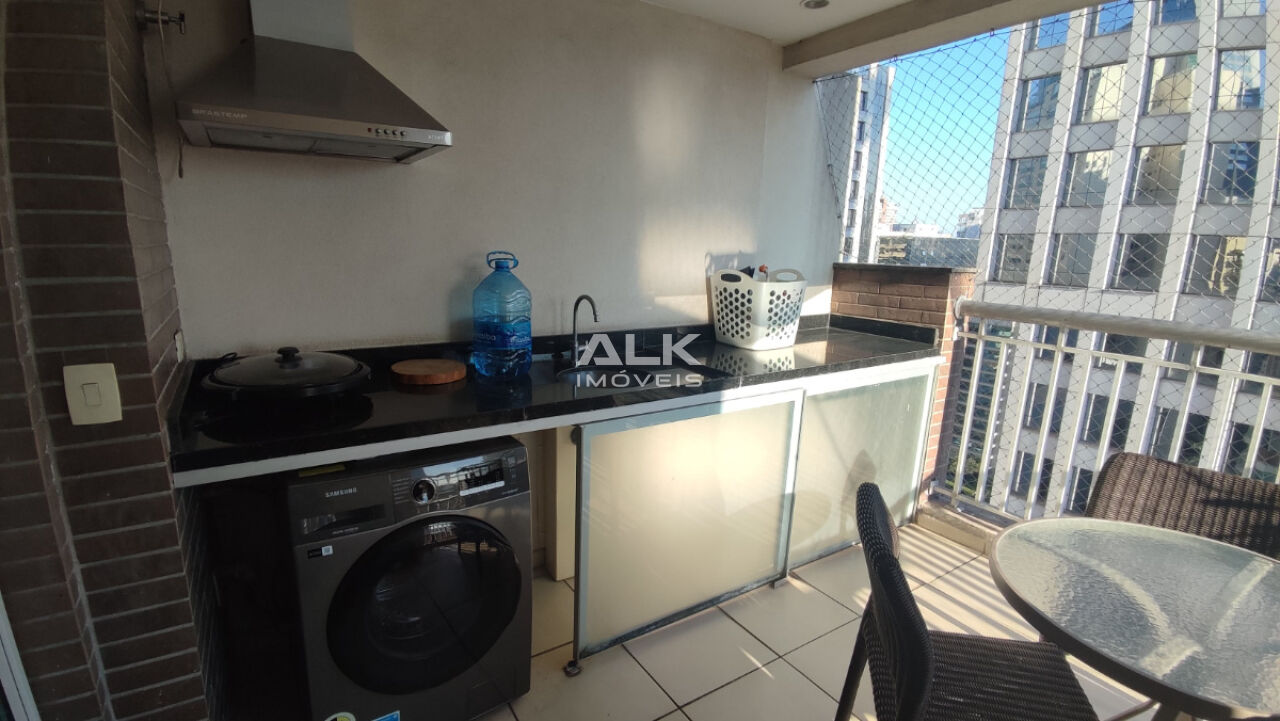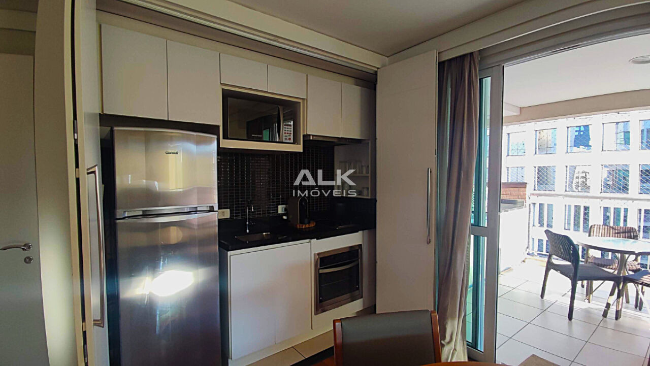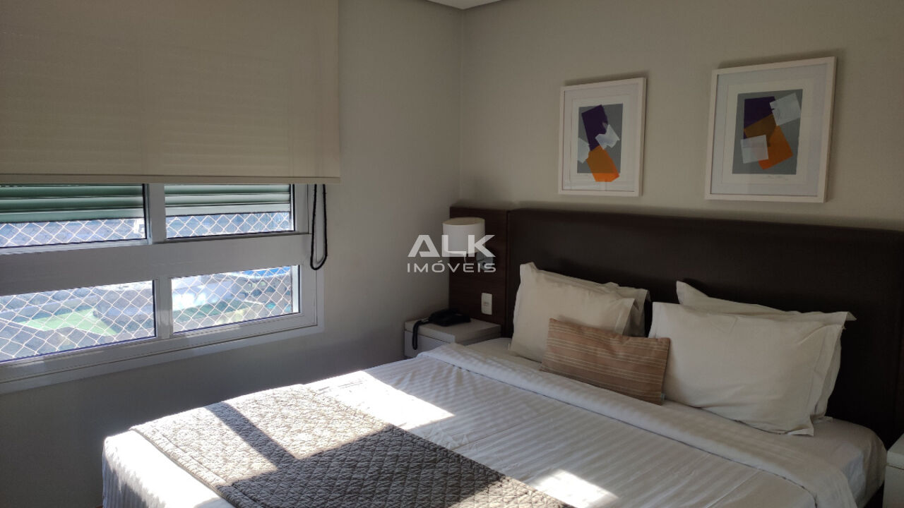Com cinquenta e seis metros quadrados possui uma planta inteligente, com aproveitamento de cada espaço! A sala de dois ambientes é integrada à cozinha e à varanda gourmet, com vista para a cidade. São dois dormitórios completos, sendo um com cama de solteiro e uma suíte com cama de casal. Também possui um banheiro social completo para atender o primeiro quarto e visitantes. Há uma vaga de garagem com serviço de manobrista.