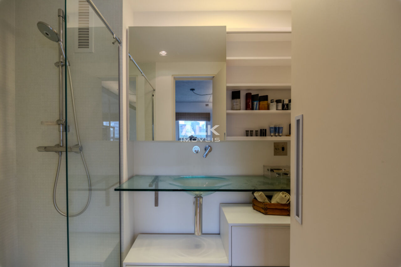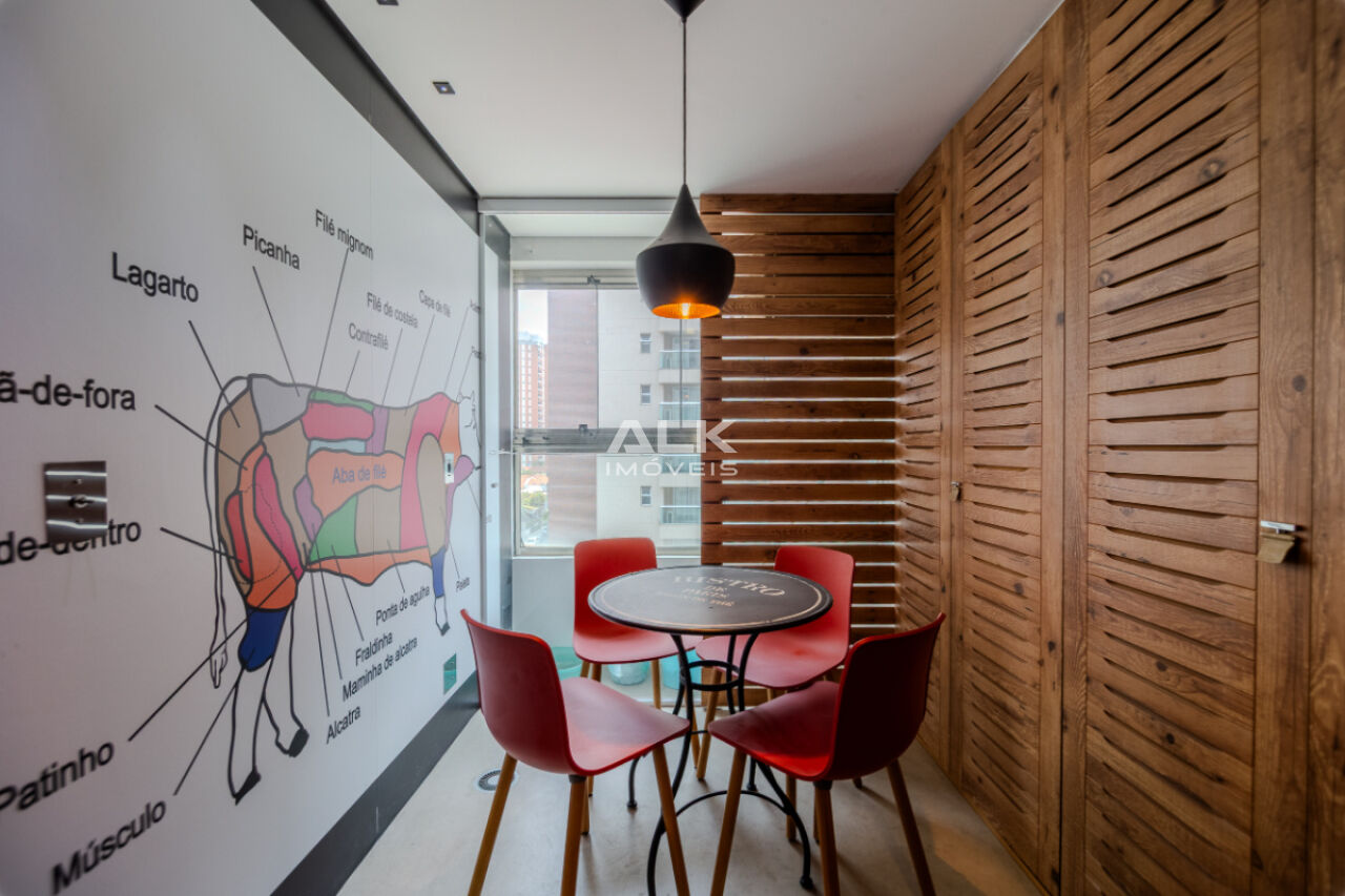 O espaço conta com aquecimento central, gás encanado, interfone, área de serviço, além de estar totalmente mobiliado e equipado com móveis planejados, garantindo funcionalidade e excelente aproveitamento de cada ambiente.