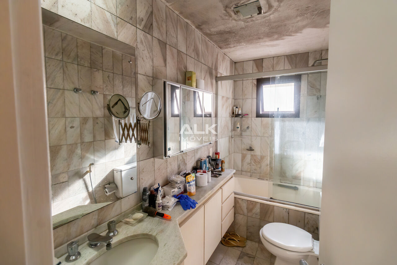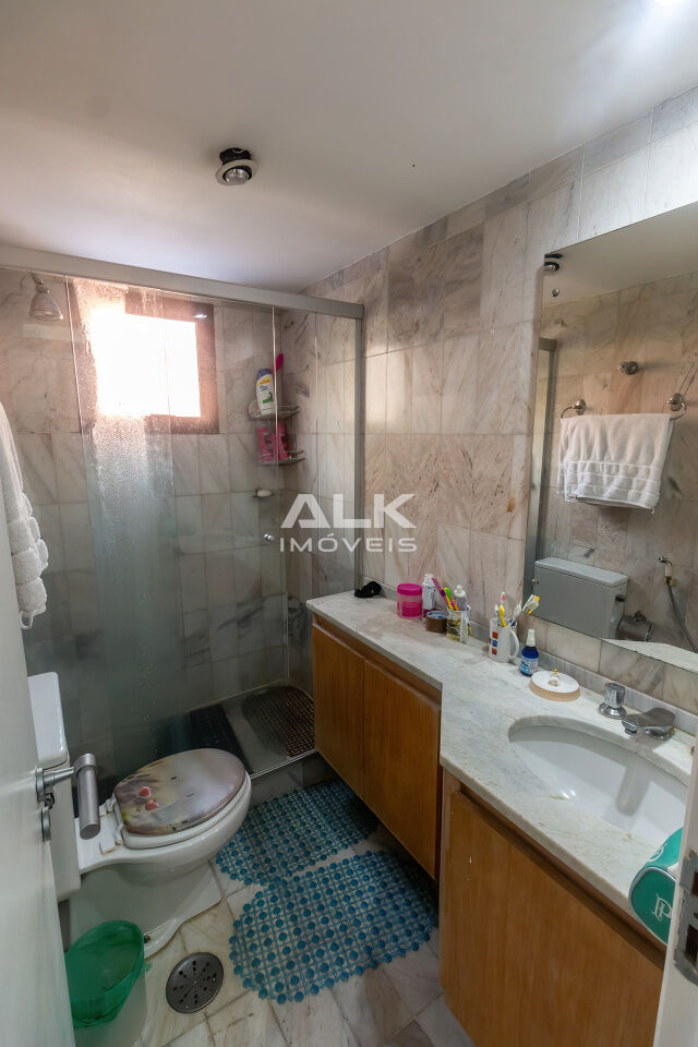 O lavabo próximo à entrada social complementa a área de convivência com elegância e funcionalidade. A cozinha e a copa, integradas e muito bem planejadas, oferecem armários de qualidade e espaço de sobra para quem gosta de cozinhar ou receber amigos com praticidade. A área de serviço é espaçosa e conta com dependência completa de empregada, com quarto e banheiro, mantendo a organização e privacidade dos moradores.