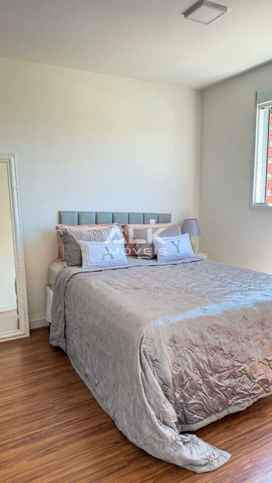 Apartamento nunca habitado, piso laminado no dormitório, janela grande facilitando a iluminação natural e com vista livre, andar alto.