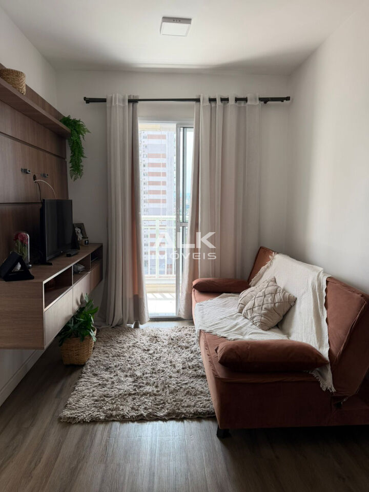 Apartamento lindo, semi mobiliado com armários planejados, varanda envidraçada. Cozinha com fogão e armários. Banheiro clean. Planta funcional. Com 1 vaga de garagem.