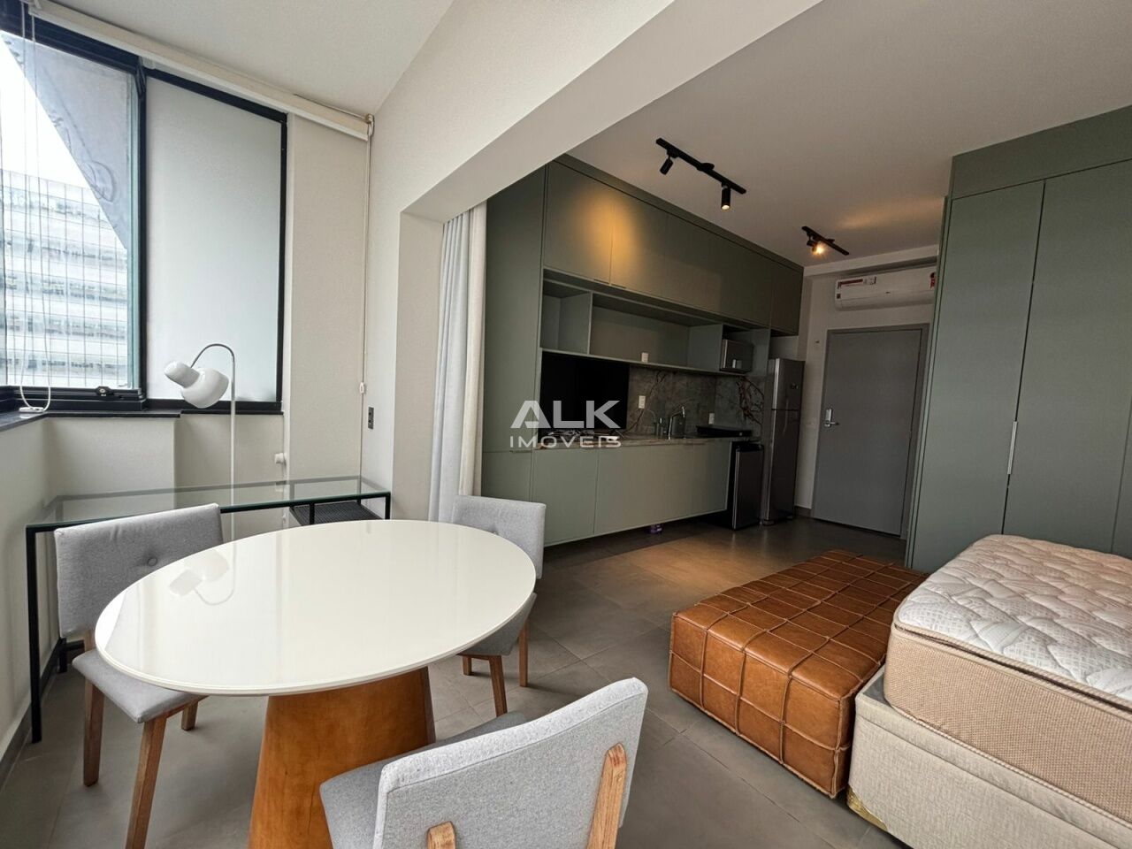 Apartamento preparado para receber quem chega a São Paulo, totalmente equipado e decorado nos mínimos detalhes. Ar condicionado para refrescar os dias quentes. Cozinha totalmente equipada com copos, taças, panelas, talheres, cafeteira e outros utensílios fundamentais para o seu dia a dia. Sofá e rack com tv giratória para assistir da sala ou deitado na cama. Dormitório com cama baú, armário amplo e com portas espelhadas, além de roupa de cama e banho disponível para uso.