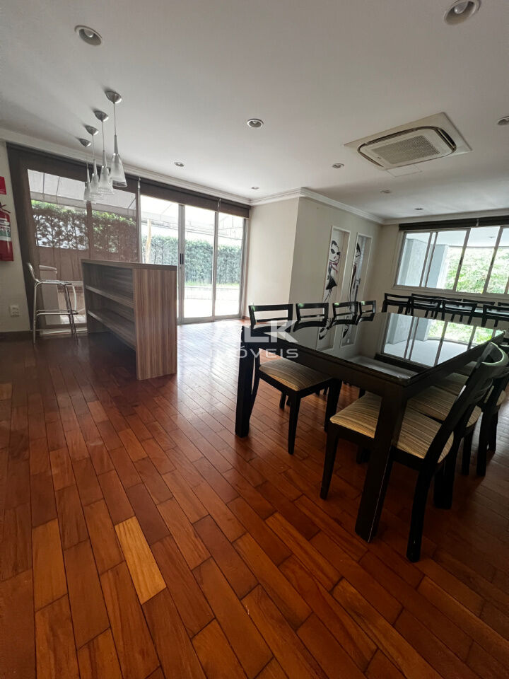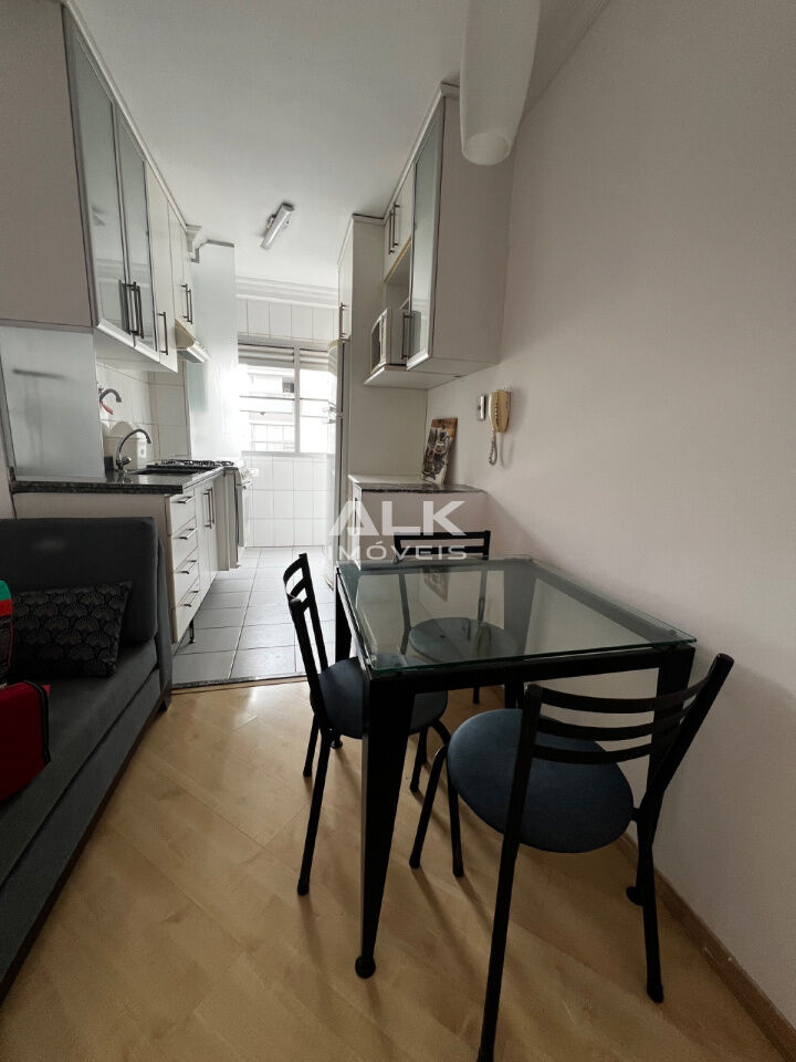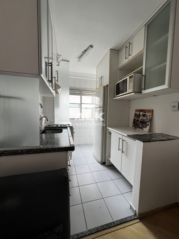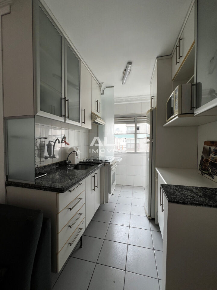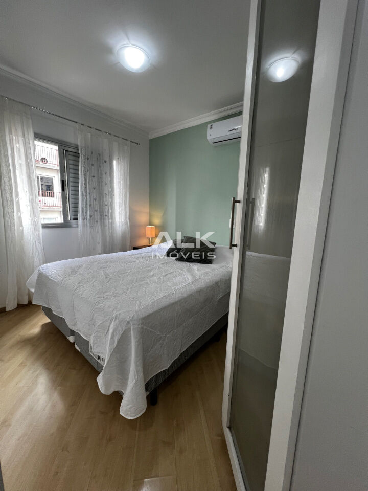 Possui 2 quartos, sendo 1 suíte, e 2 banheiros, oferecendo praticidade para o dia a dia. A cozinha integrada, mobiliada e equipada, promove um ambiente acolhedor e perfeito para receber amigos e familiares. A sala conta com uma sacada que proporciona uma vista permanente, ideal para relaxar.