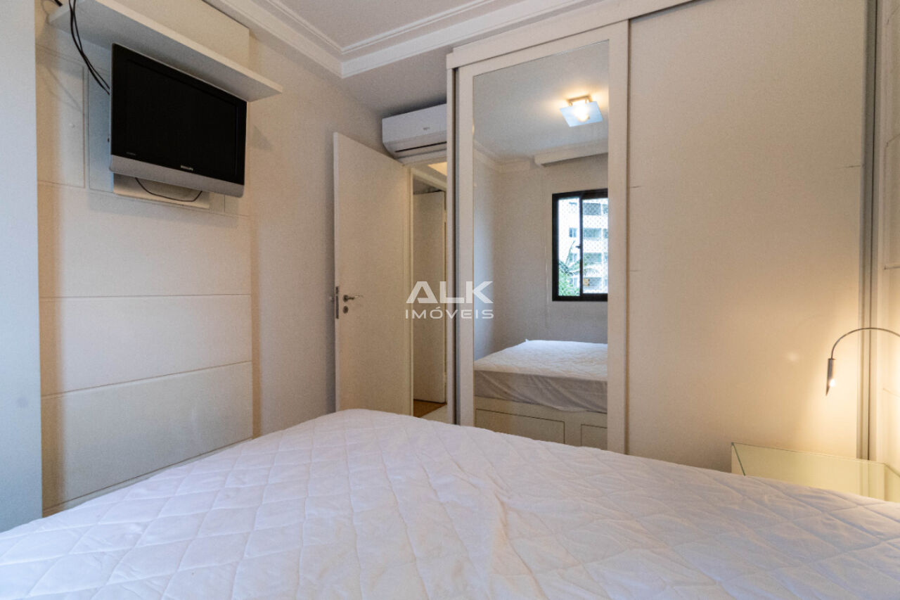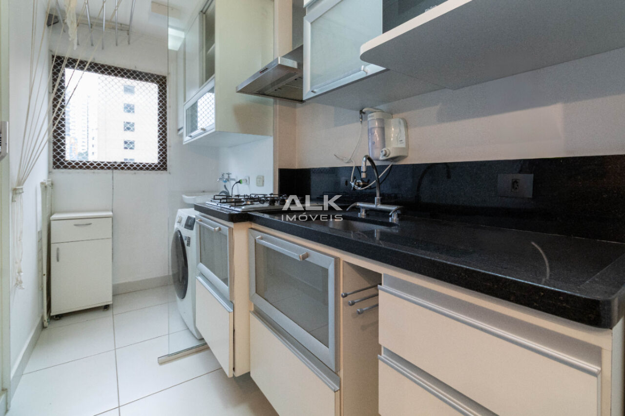 O imóvel conta com 2 dormitórios com ar condicionado e cama; sala ampla com sofá, TV e acesso à sacada; cozinha americana com geladeira, fogão e micro-ondas;  área de serviço com máquina de lavar e 1 vaga de garagem. Um espaço bem distribuído, funcional e perfeito para executivos, estudantes ou casais que desejam uma ótima localização, praticidade, lazer e estilo de vida.
