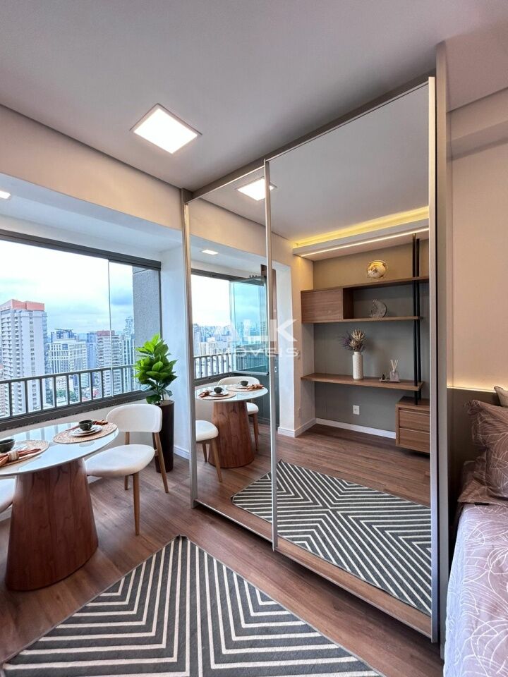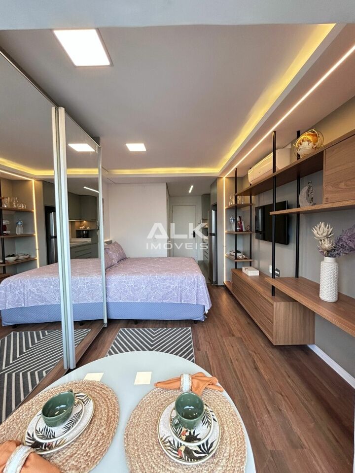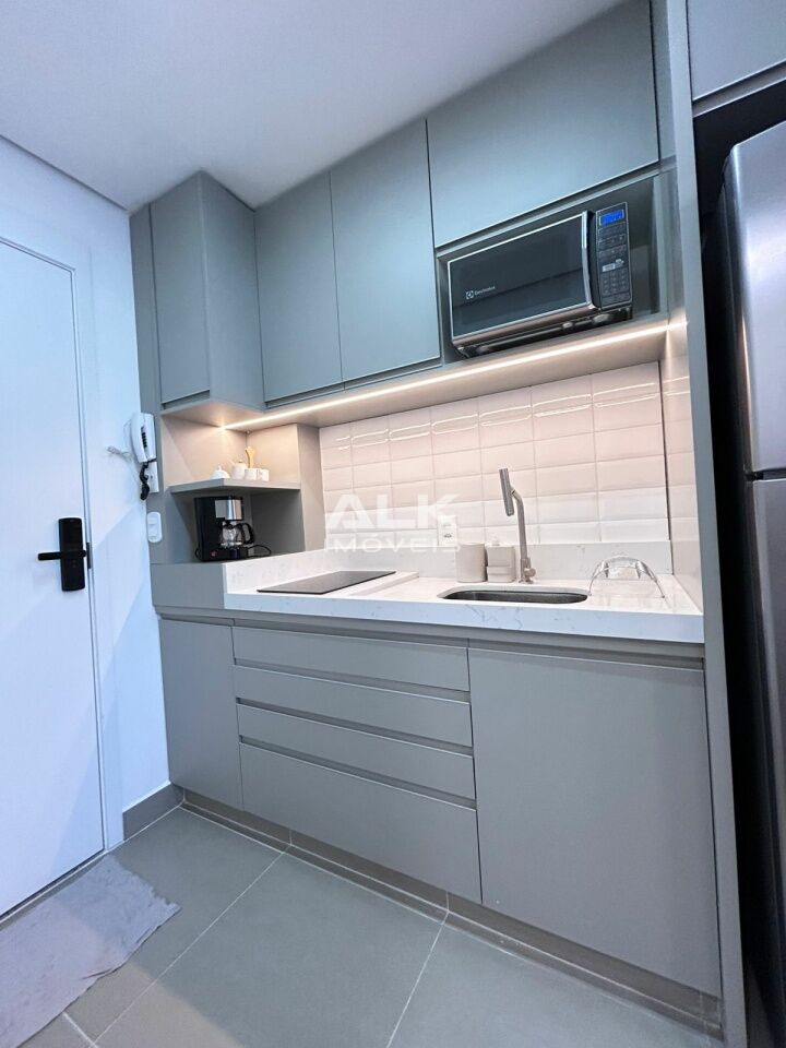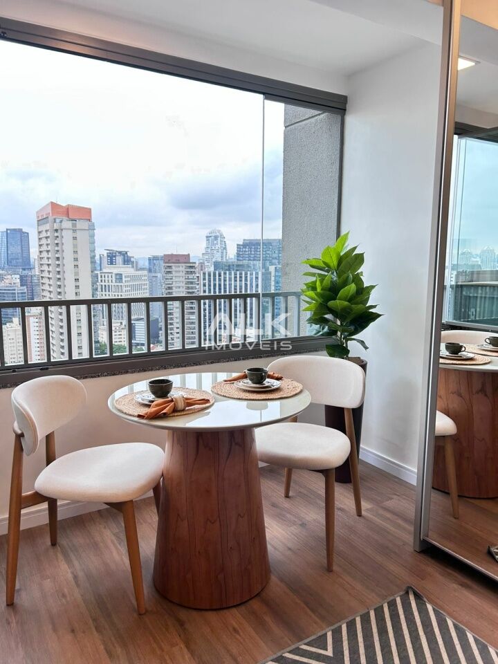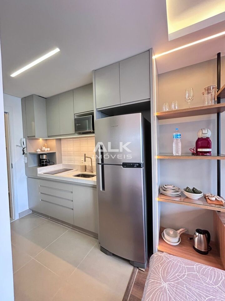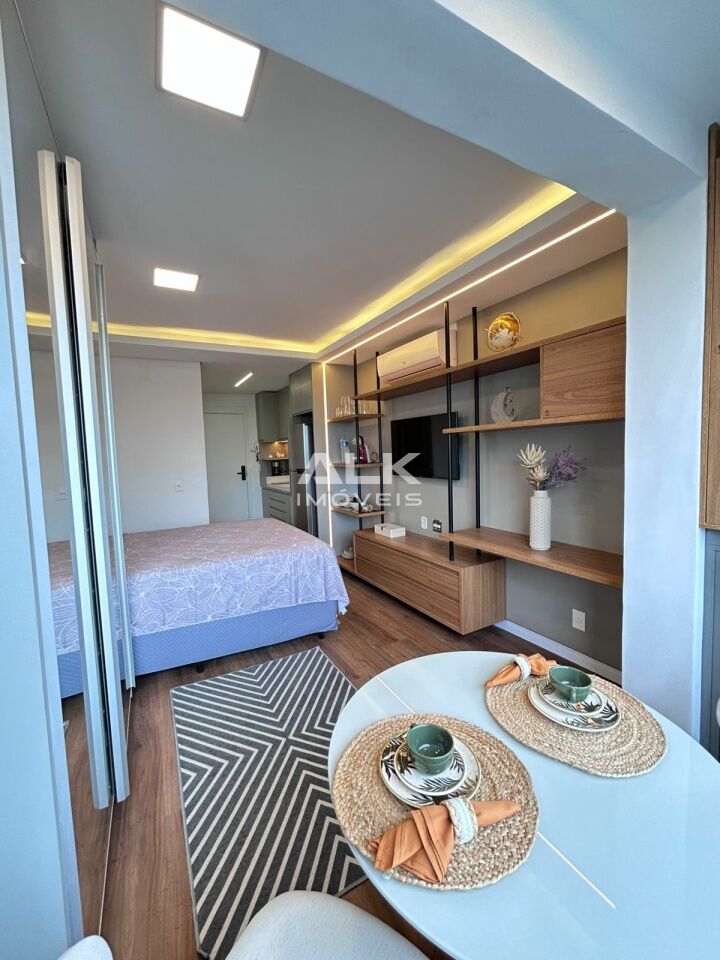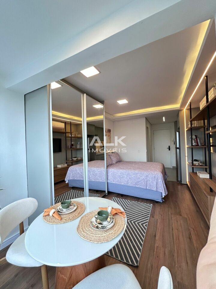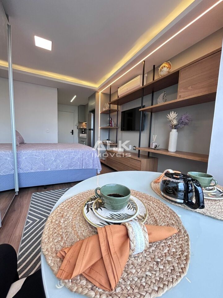 Studio em andar alto com 25m² entregue com excelente acabamento, totalemnte mobiliado com utencilios, ar-cndicionado, com fechadura eletrônica e internet.