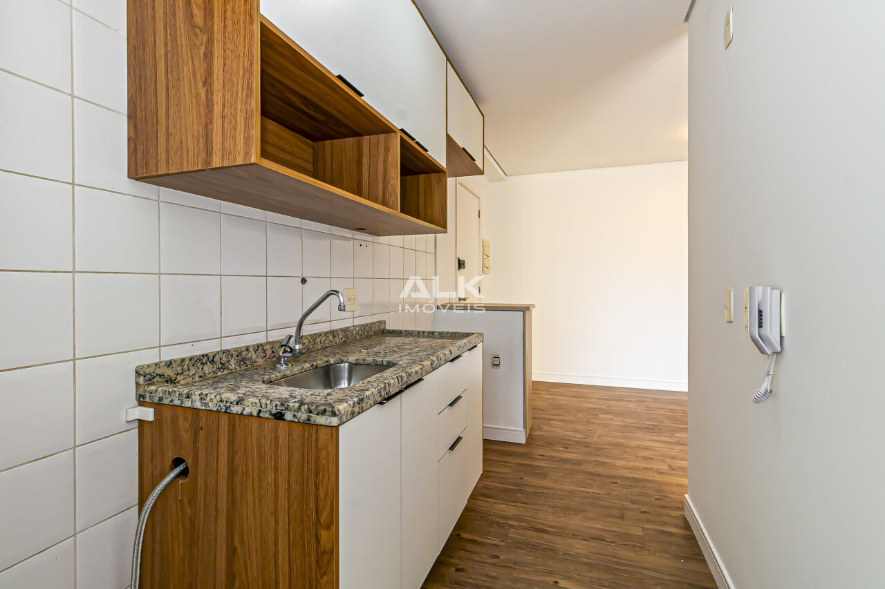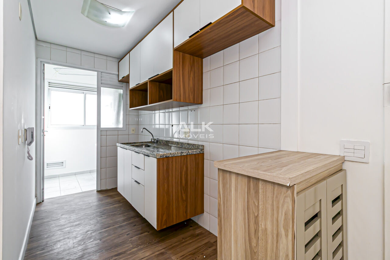 A cozinha planejada conta com armários embutidos, otimizando o espaço e trazendo praticidade ao ambiente. O imóvel ainda dispõe de área de serviço e 1 vaga de garagem.