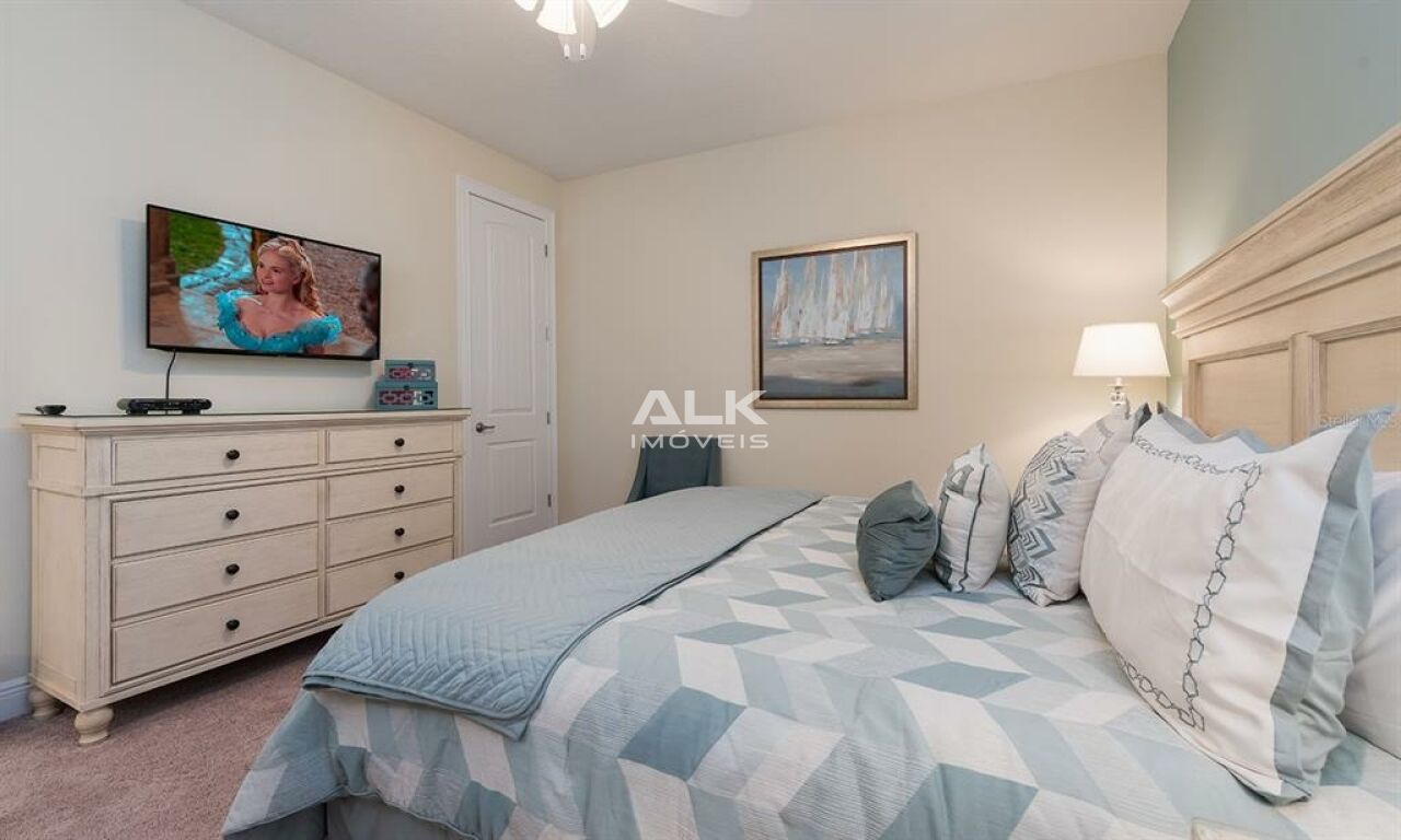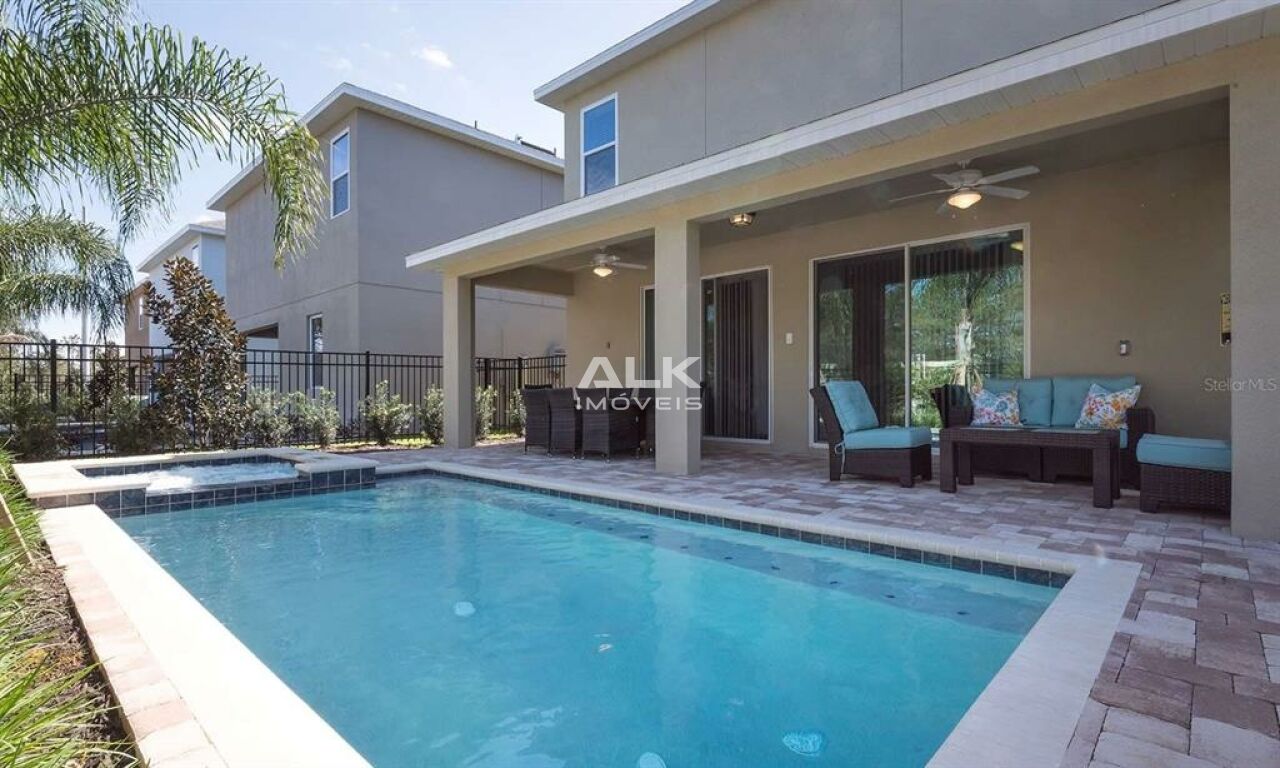 Linda casa com piscina luxuoso ENCORE RESORT. Completamente mobiliado, decorado com bom gosto, 5 suítes com planta ampla e ambientes claros e arejados. 2 vagas coberta para carros. Bancadas de banheiro de cozinha em granito, utensílios de cozinha de aço inoxidável, lavanderia, piscina aquecida. O Clubhouse com piscina em estilo resort tropical de 10 acres, academia completa, 4 piscinas grandes, 7 jacuzzis, quadras de basquete, vôlei e quadras de tênis. 10 minutos da Disney. Perfeito locação de curta temporada. Pode ser sua residência principal ou sua casa de férias.