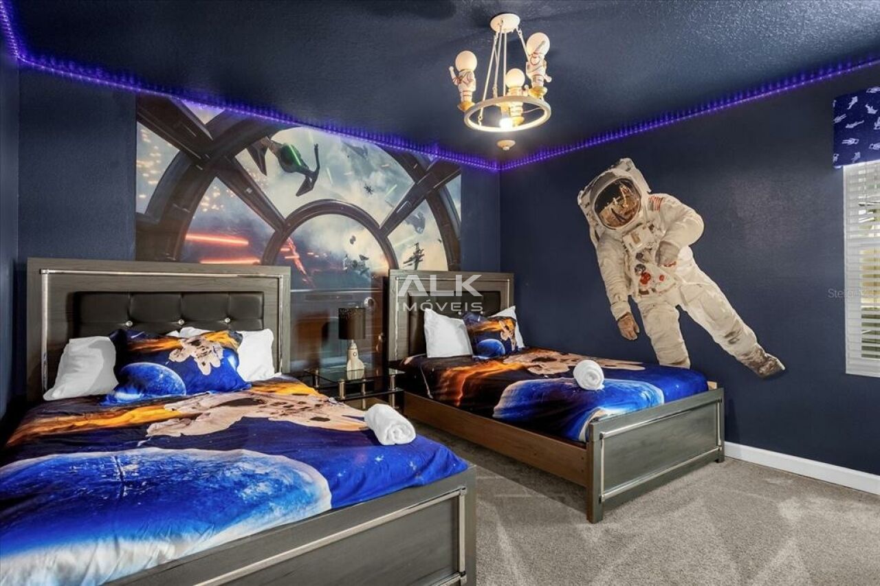 Deslumbrante casa de 8 quartos e lindamente mobiliada, excelente localização no renomado Condomínio Storey Lake. Planta aberta apresenta uma grande sala e área de jantar que econectadas com a grande cozinha. A cozinha vem com bancadas em granito, balcão de café da manhã, utensílios de aço inoxidável, armários de 42? e despensa. As áreas comuns oferecem piso de cerâmica grande. O quintal privado possui uma grande varanda coberta, deck , com uma piscina coberta e com spa. Storey Lake é condomínio de férias perfeita. O incrível Clubhouse oferece Tiki Bar/Grille, Canoe/Kayak Rental, Lazy River, Fitness Center, Minigolfe, Quiet Pool, Splash Pad, Double Slide, Volleyball Court e Sports Court. O resort fica a poucos minutos da entrada do parque Disney World. Storey Lake Resort também está convenientemente localizado perto do Aeroporto Internacional de Orlando, International Drive, Seaworld, Universal Studios e Premium Outlet Malls.