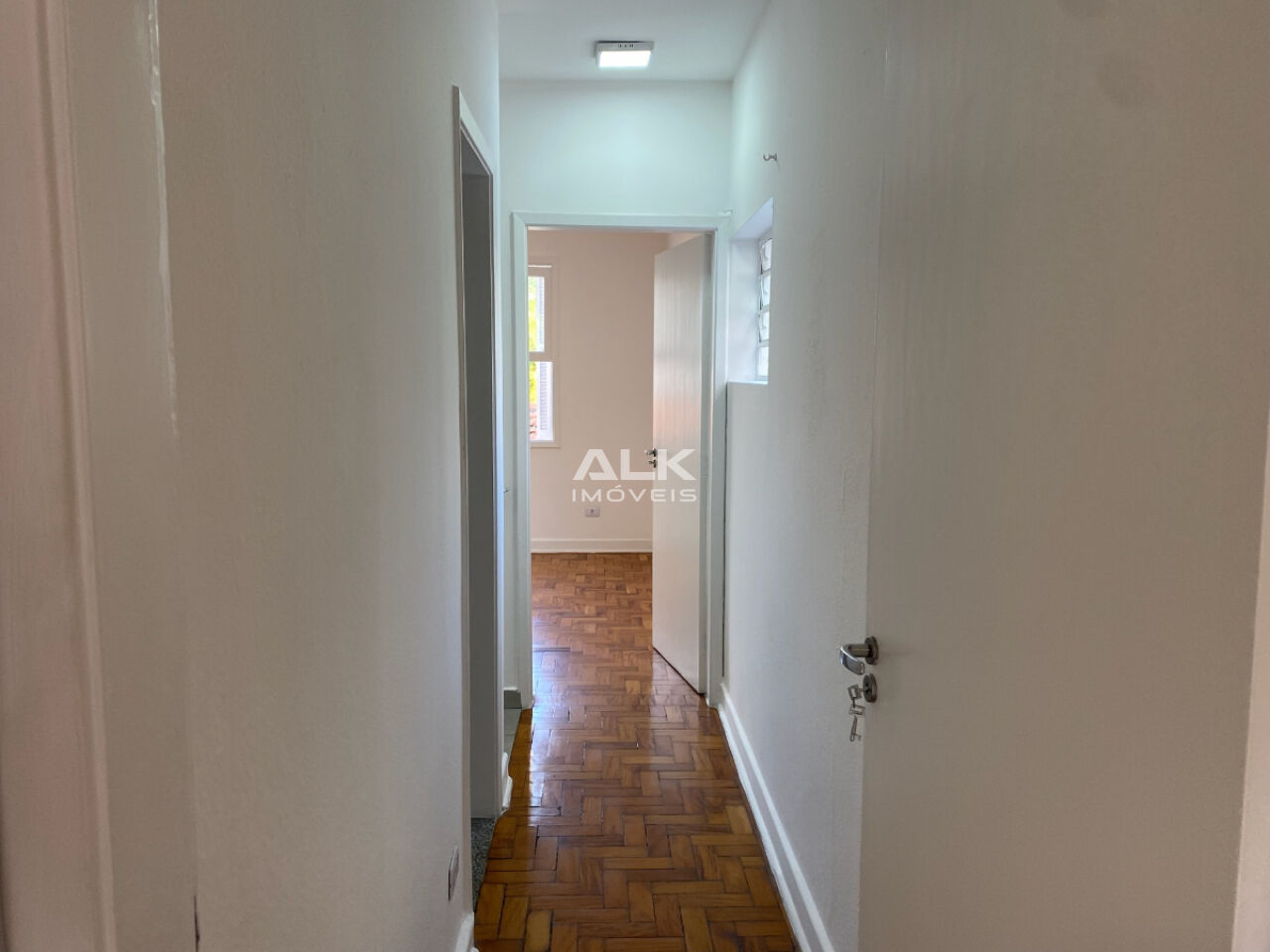 A escada leva à parte superior, onde estão dois dormitórios com piso de madeira em ótimo estado, que conferem ainda mais charme e sensação de acolhimento. Os ambientes são bem distribuídos e com ótimo aproveitamento de espaço. O banheiro social é funcional, com bom espaço.
