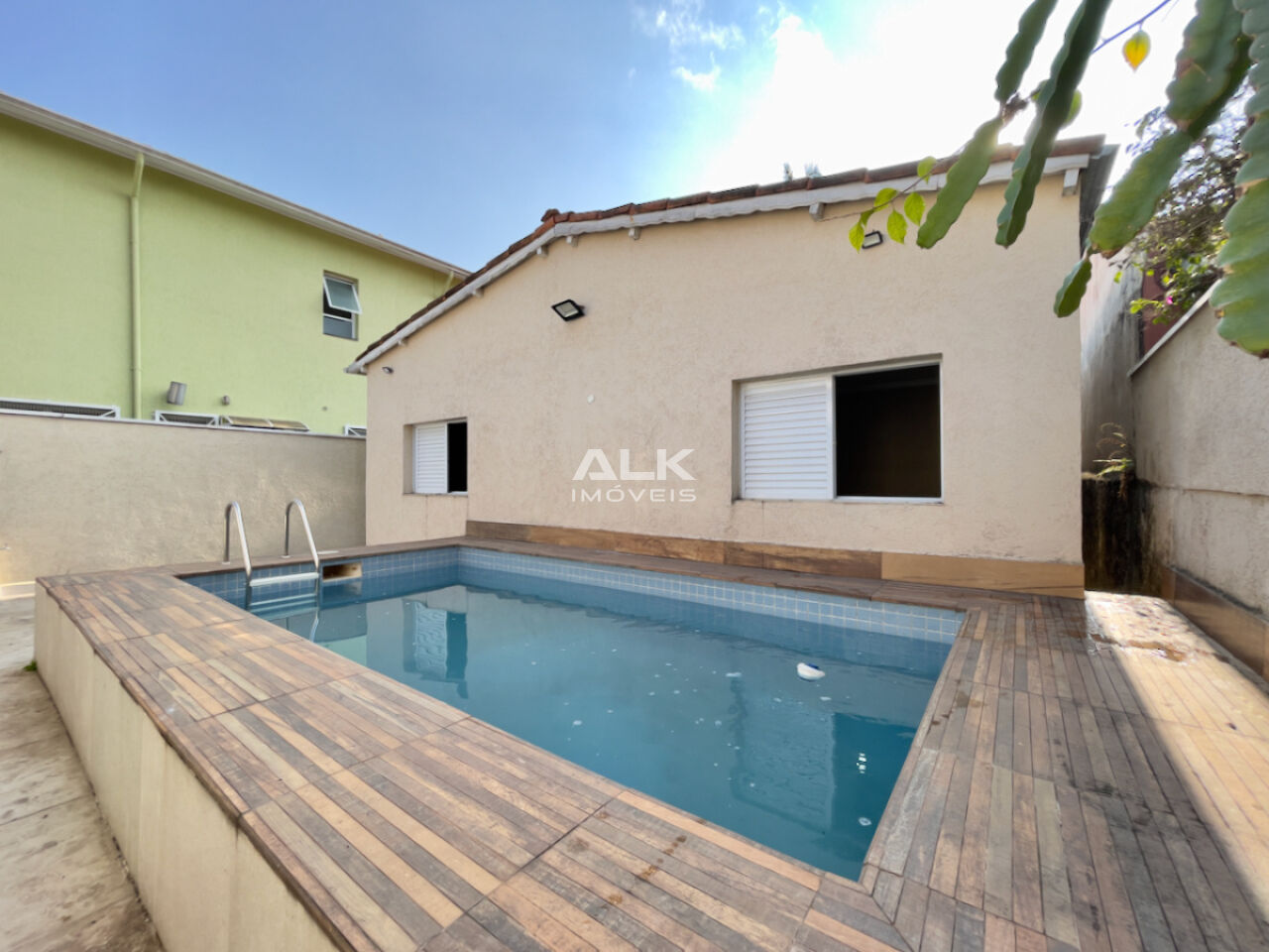Na área externa, destaca-se a piscina, perfeita para momentos de lazer e relaxamento. A edícula, que complementa a construção principal, oferece dois quartos e um banheiro, podendo ser utilizada como espaço para hóspedes ou home office. Além disso, há uma lavanderia separada, proporcionando maior organização e praticidade