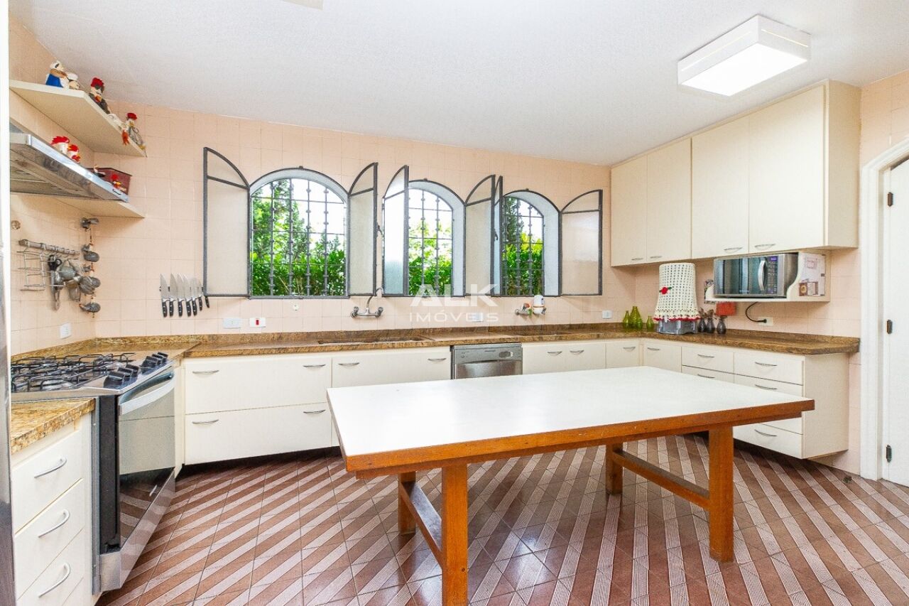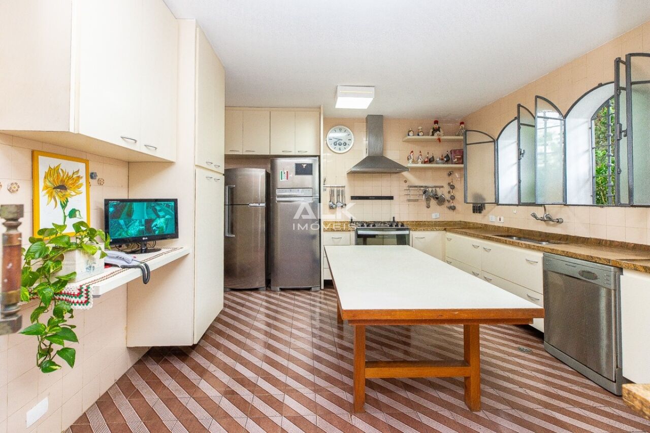 A cozinha é ampla e conta com uma grande bancada. Logo ao lado uma reservada copa/sala de almoço.