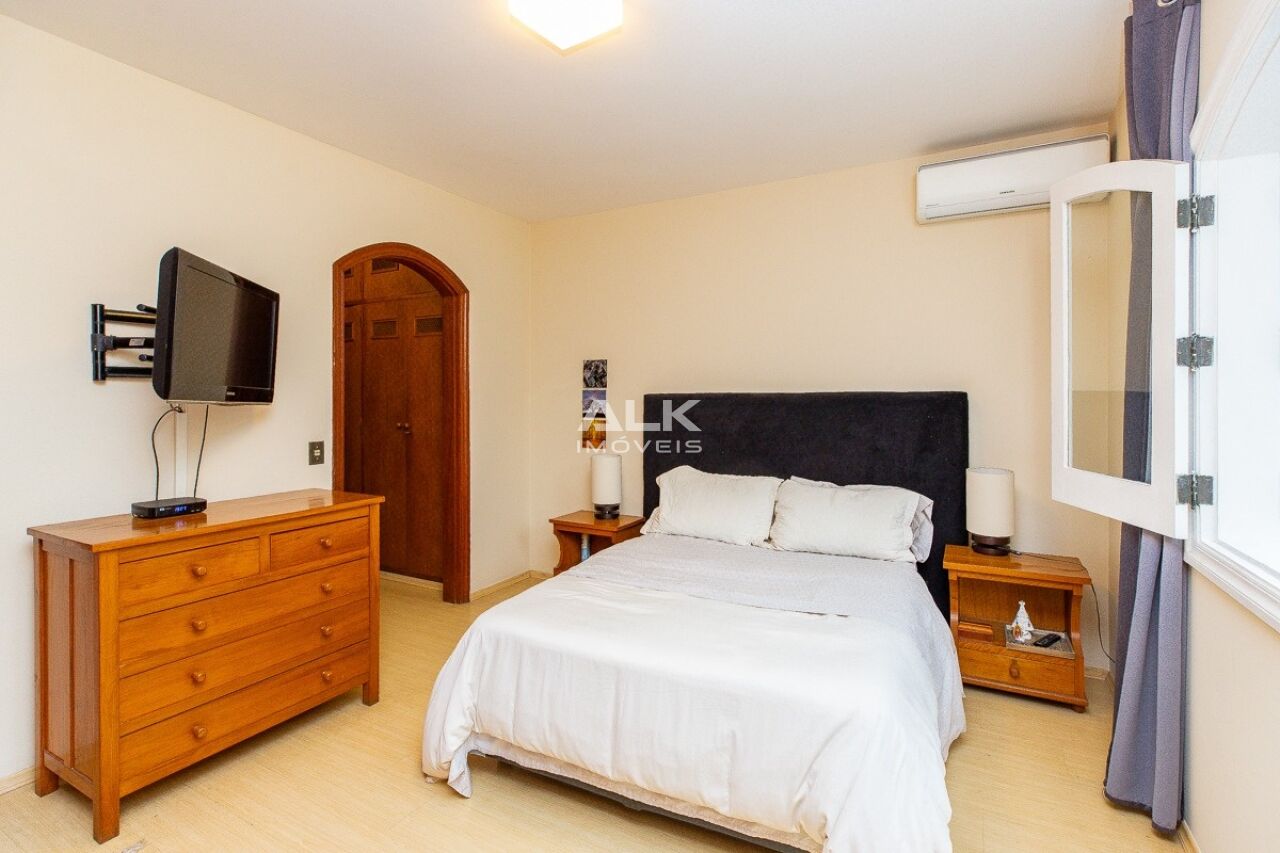 A suíte master é um destaque nessa casa charmosa, oferece uma experiência de luxo e conforto, com uma sala para leitura e uma varanda privativa.