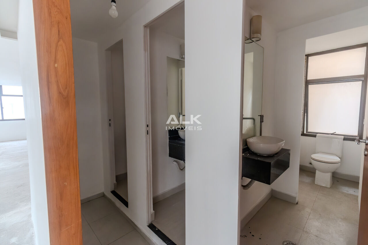 Além disso, o conjunto já conta com três banheiros montados e uma copa, proporcionando conforto imediato para sua equipe e eliminando etapas importantes no processo de adaptação do imóvel. A entrada do conjunto é ampla e aproveita parte do hall de elevadores, o que reforça a sensação de exclusividade e proporciona uma recepção diferenciada para seus clientes e colaboradores ? afinal, o conjunto ocupa meio andar, garantindo discrição e presença marcante.