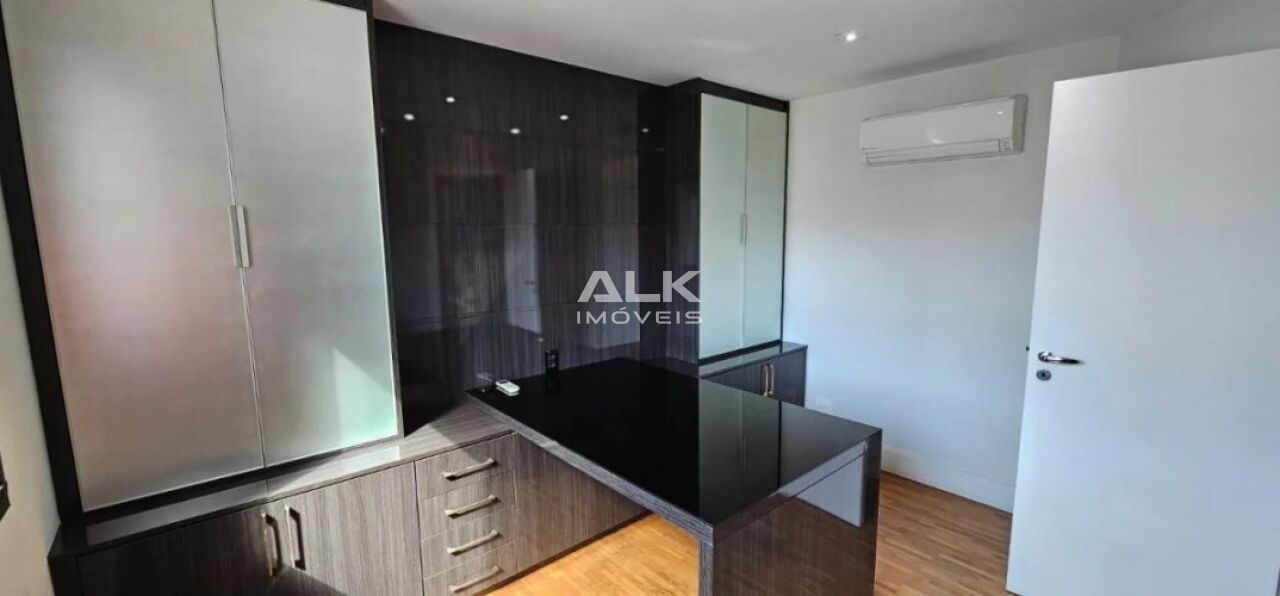 Amplo escritório com muitíssimos armários e mesa feitos sob medida de marcenaria e material de altíssima qualidade;