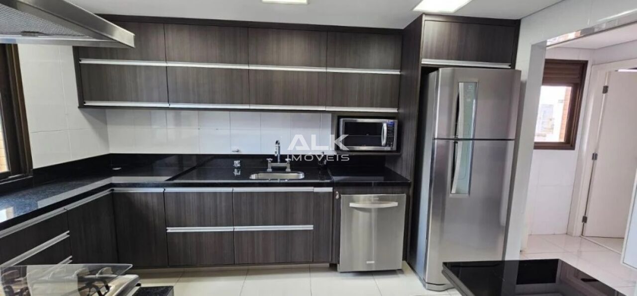 Ampla cozinha com eletrodomésticos moderníssimos, inclusive fogão com coifa, além de espaçosa área de serviço com dependência de empregada;