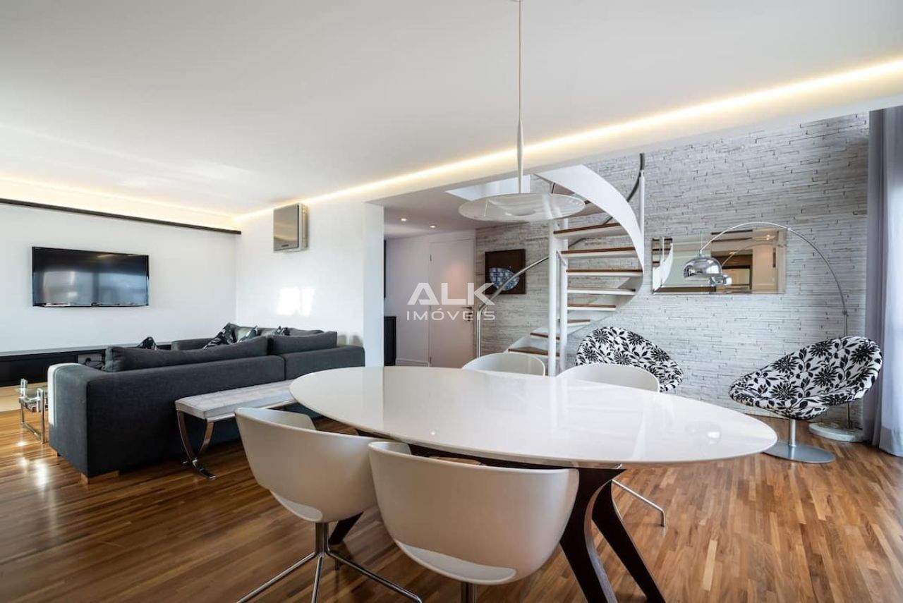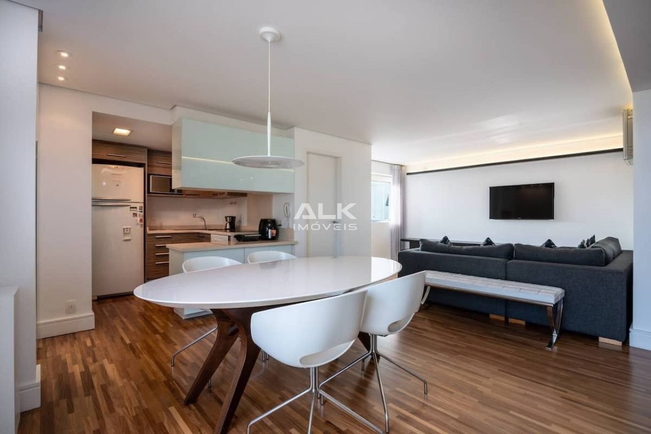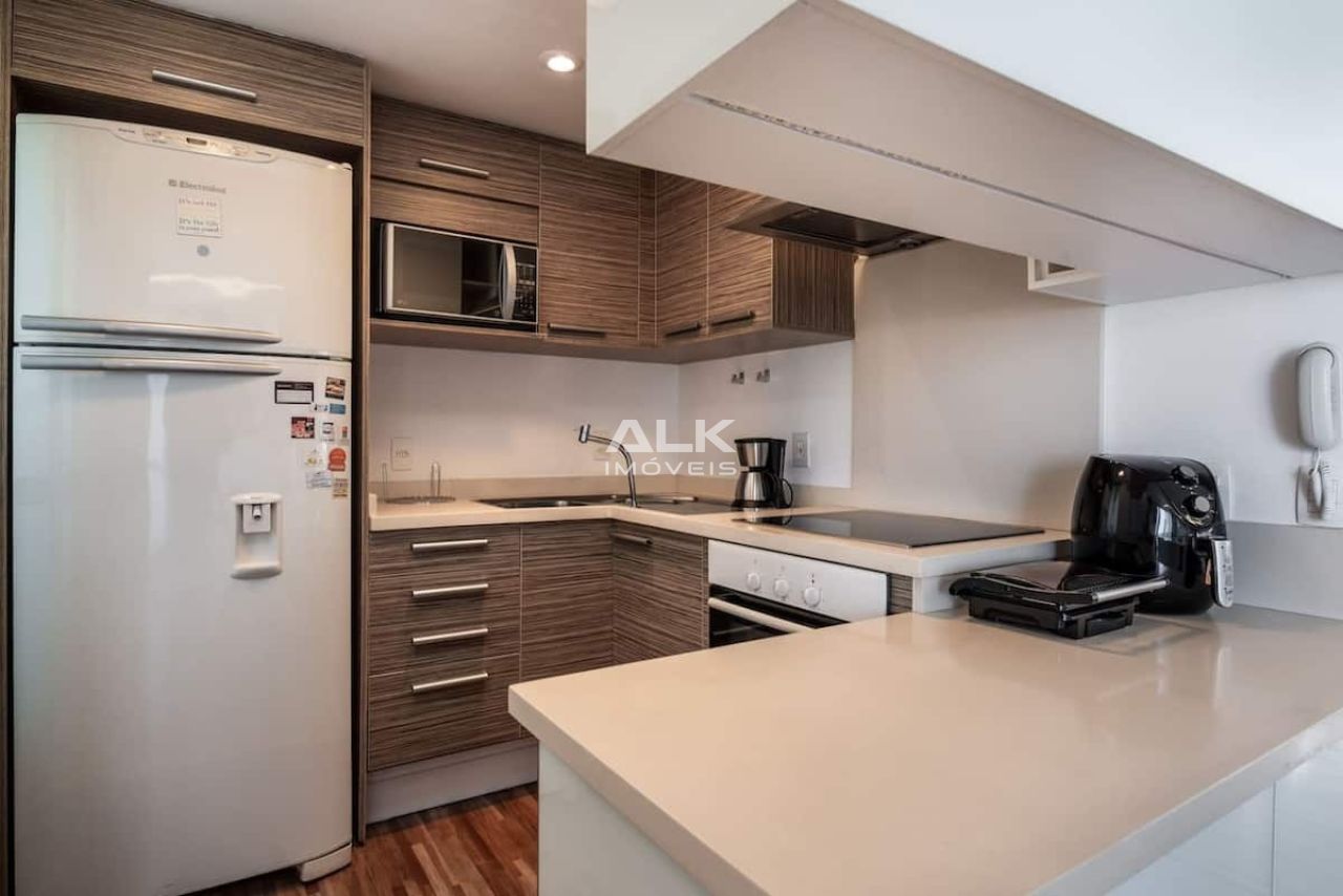 Apartamento duplex, com 01 dormitório suíte, escritório, cozinha completa, sala de estar, lavabo, área de serviço e 02 varandas, excelente sinal de Internet e TV por assinatura. Super decorado e com muito conforto!"