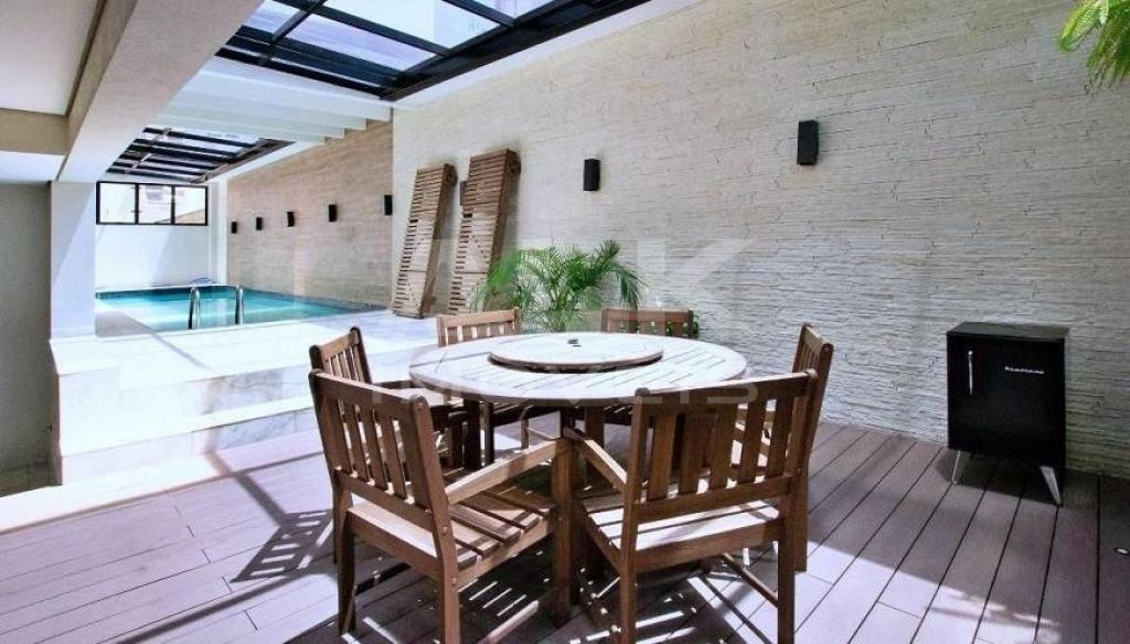 1º piso: sala com pé direito duplo, cozinha integrada e sala de jantar mobiliada. 2º piso: suíte com armários 1 vaga de garagem Prédio com piscina, sauna, lavanderia, academia, TV e internet.
