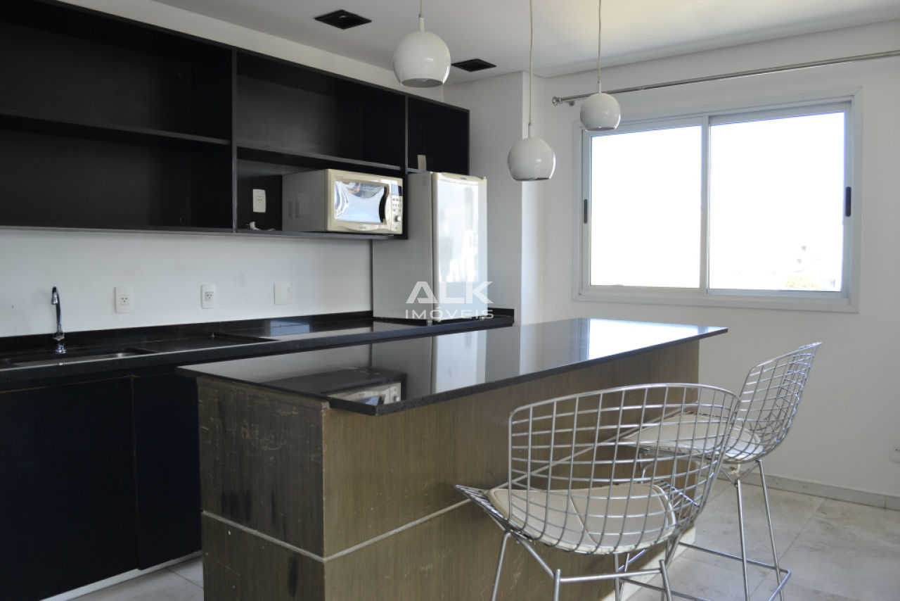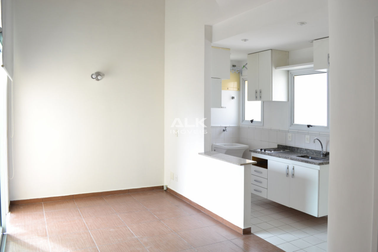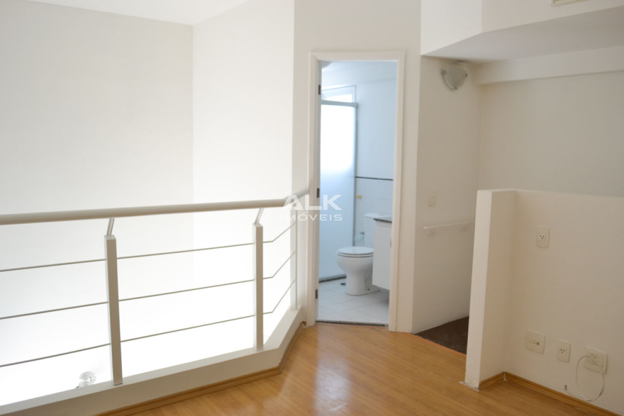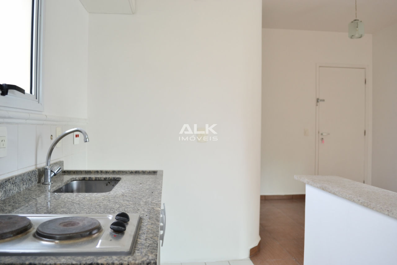 Apartamento duplex 45m²: 1 sala com cozinha americana e área de serviço, 1 banheiro social, 1 dormitório (suíte) e 1 varanda. 1 vaga garagem. Pintura nova.