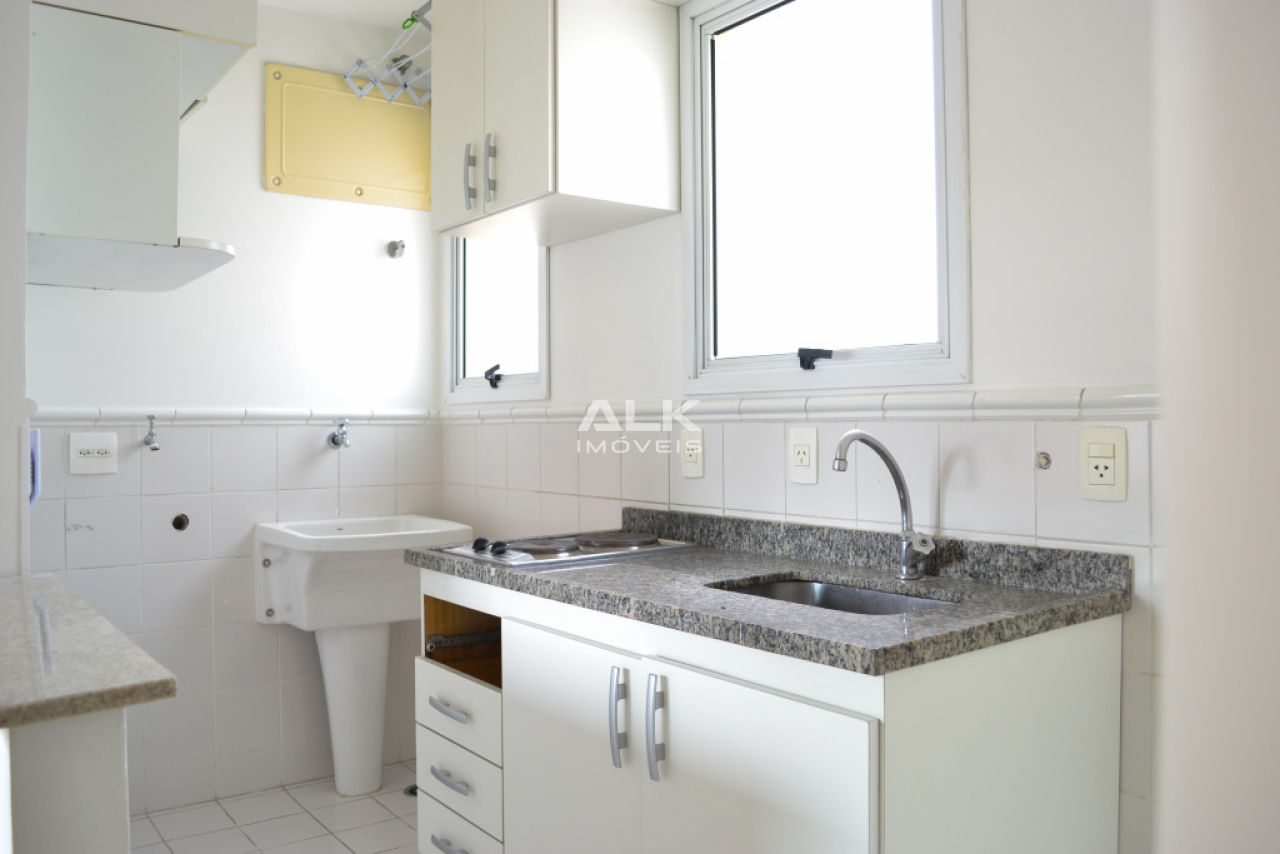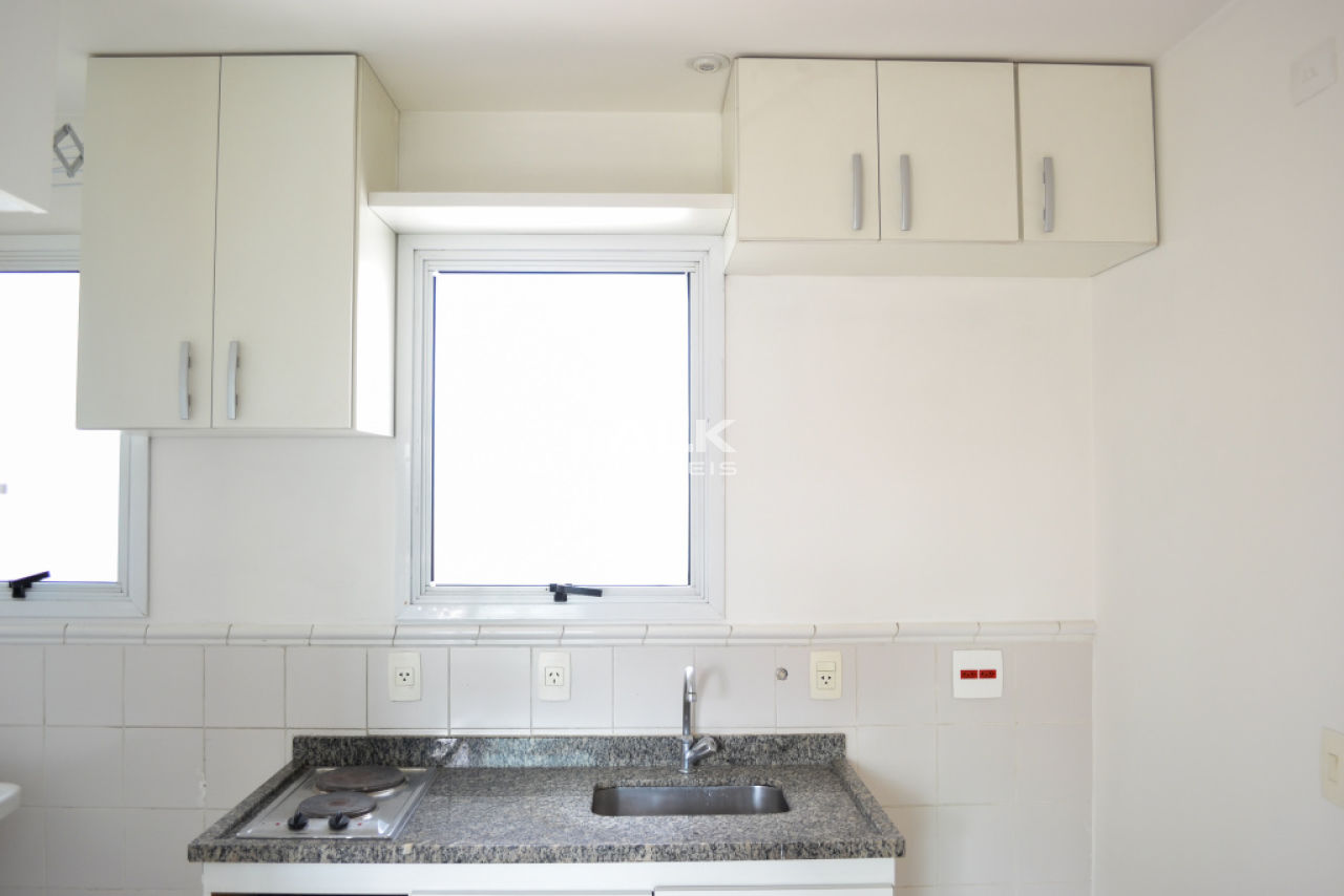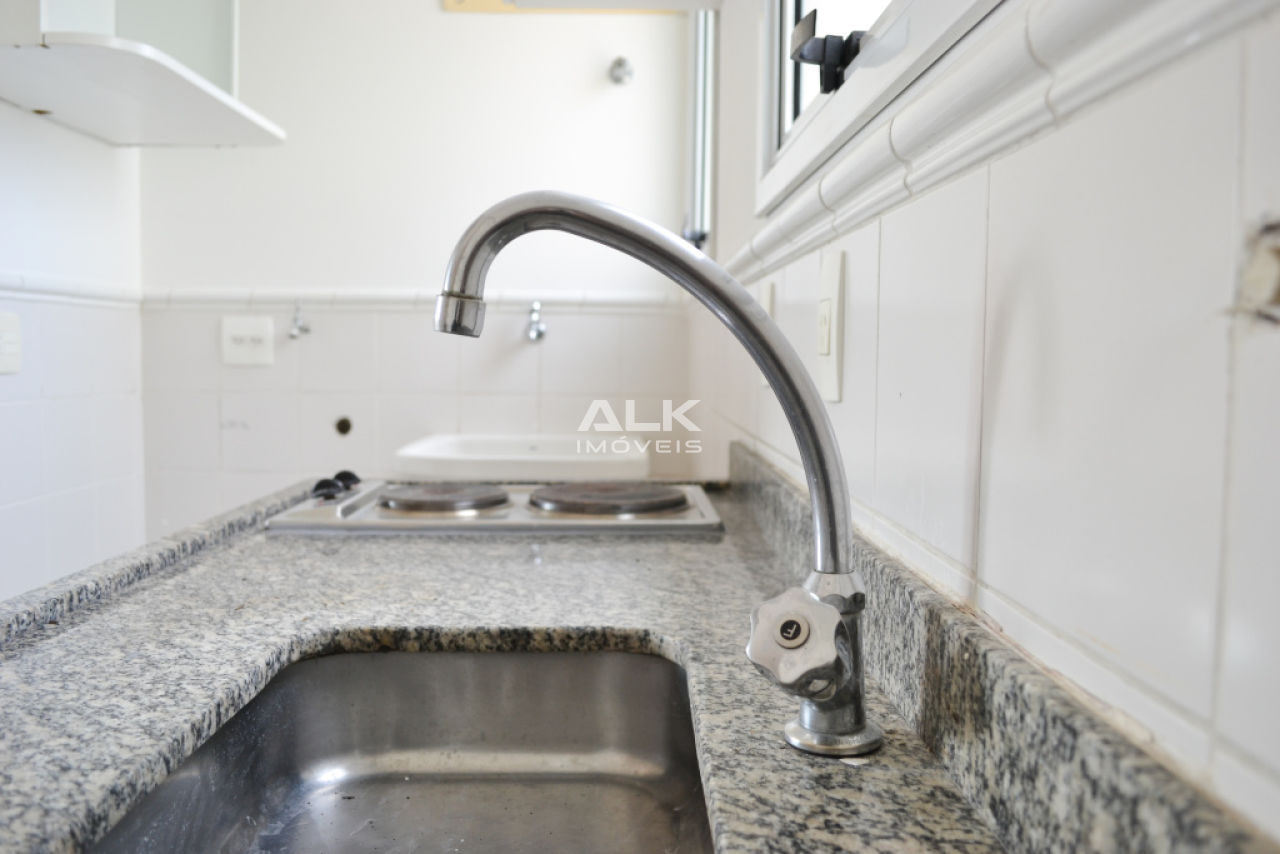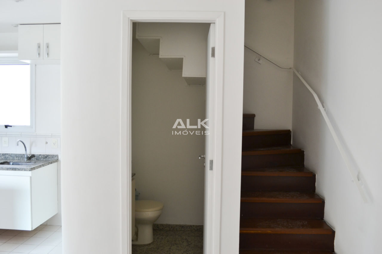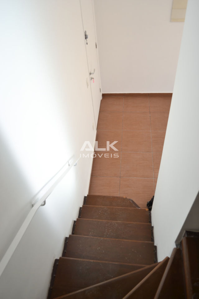 Apartamento duplex 45m²: 1 sala com cozinha americana e área de serviço, 1 banheiro social, 1 dormitório (suíte) e 1 varanda. 1 vaga garagem. Pintura nova.