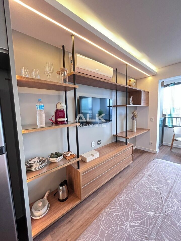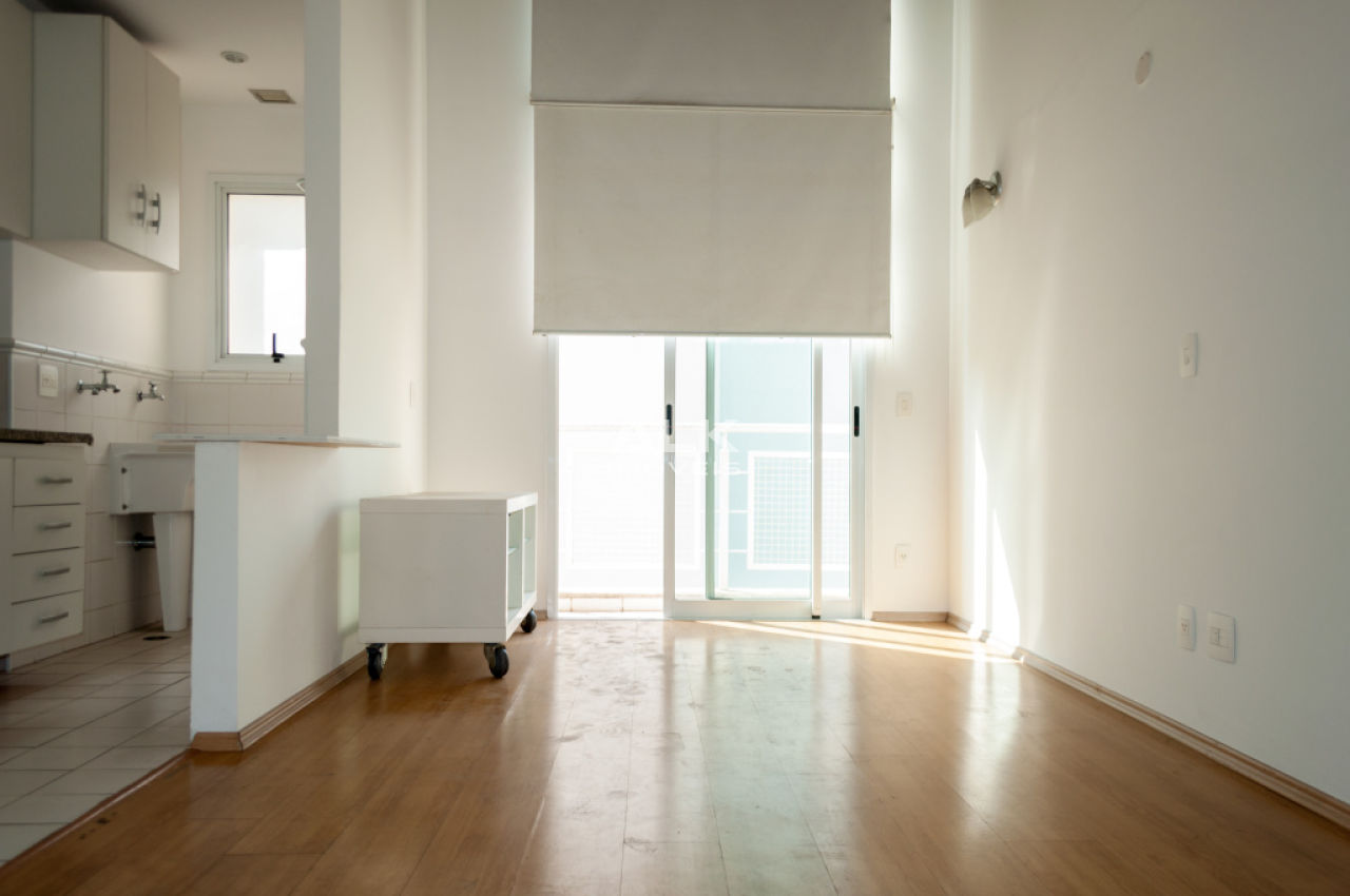 Apartamento duplex 45m²: 1 sala com cozinha americana e área de serviço, 1 banheiro social, 1 dormitório (suíte) e 1 varanda. 1 vaga garagem. Pintura nova.
