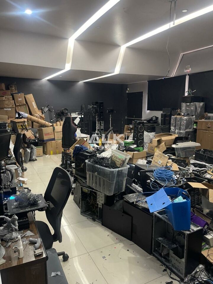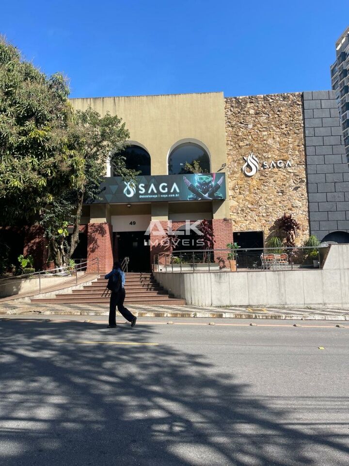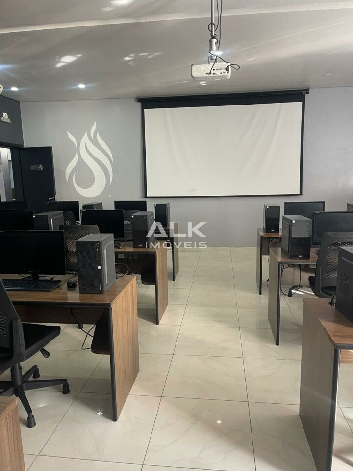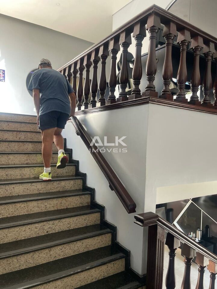 Área construída 1334 metros quadrados, com pé direito de uns 4 a 5 metros (atualmente tem oito salas, sendo três embaixo e cinco em cima, com vaga no sub solo para dezoito automóveis.