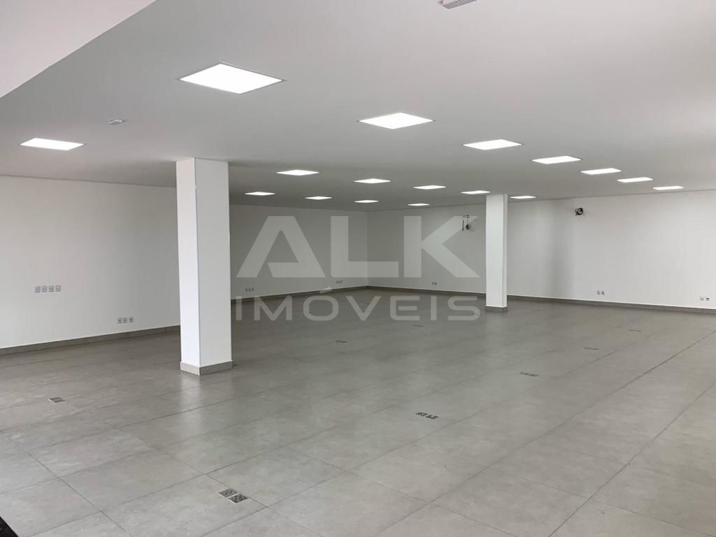 Prédio de quase 400 metros quadrados com corredor lateral (área de carga/descarga e serviço coberto).